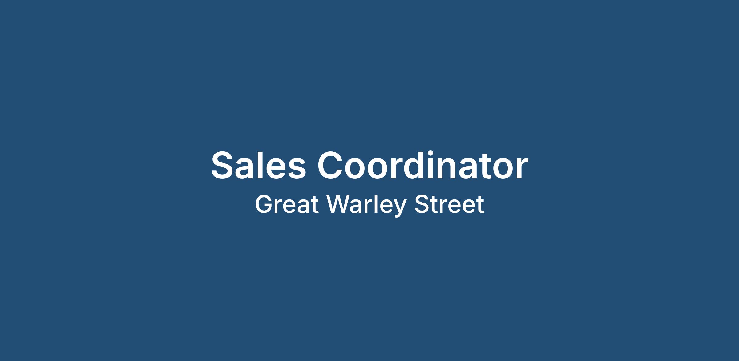 Sales Support Coordinator 1 year contract – Up to £35,000