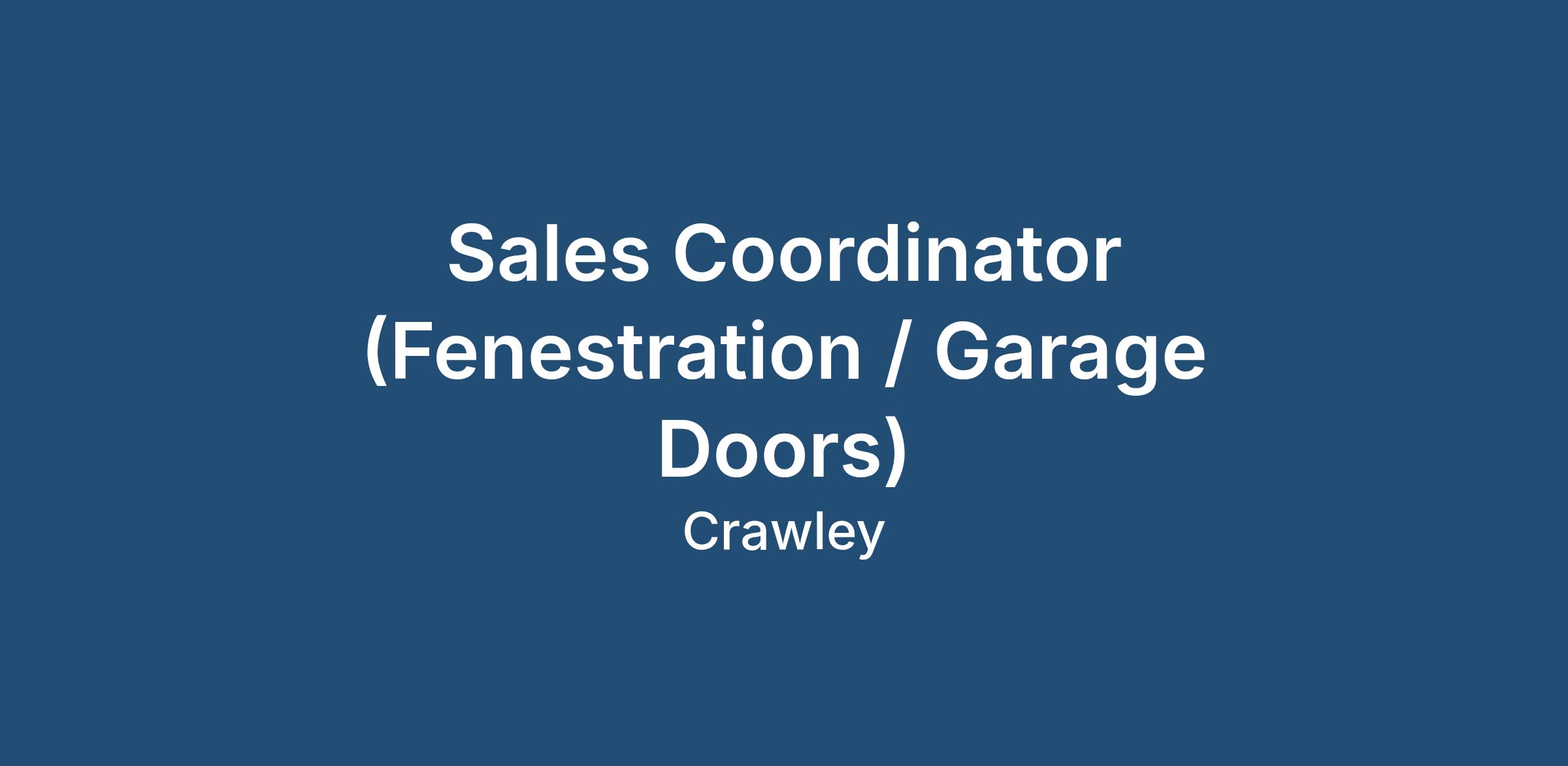 Keywords: Sales Coordinator, Sales Advisor, Technical Sales, Internal Sales, Construction Sales, Trade Counter, Garage Doors, Doors, Crawley, West Sussex