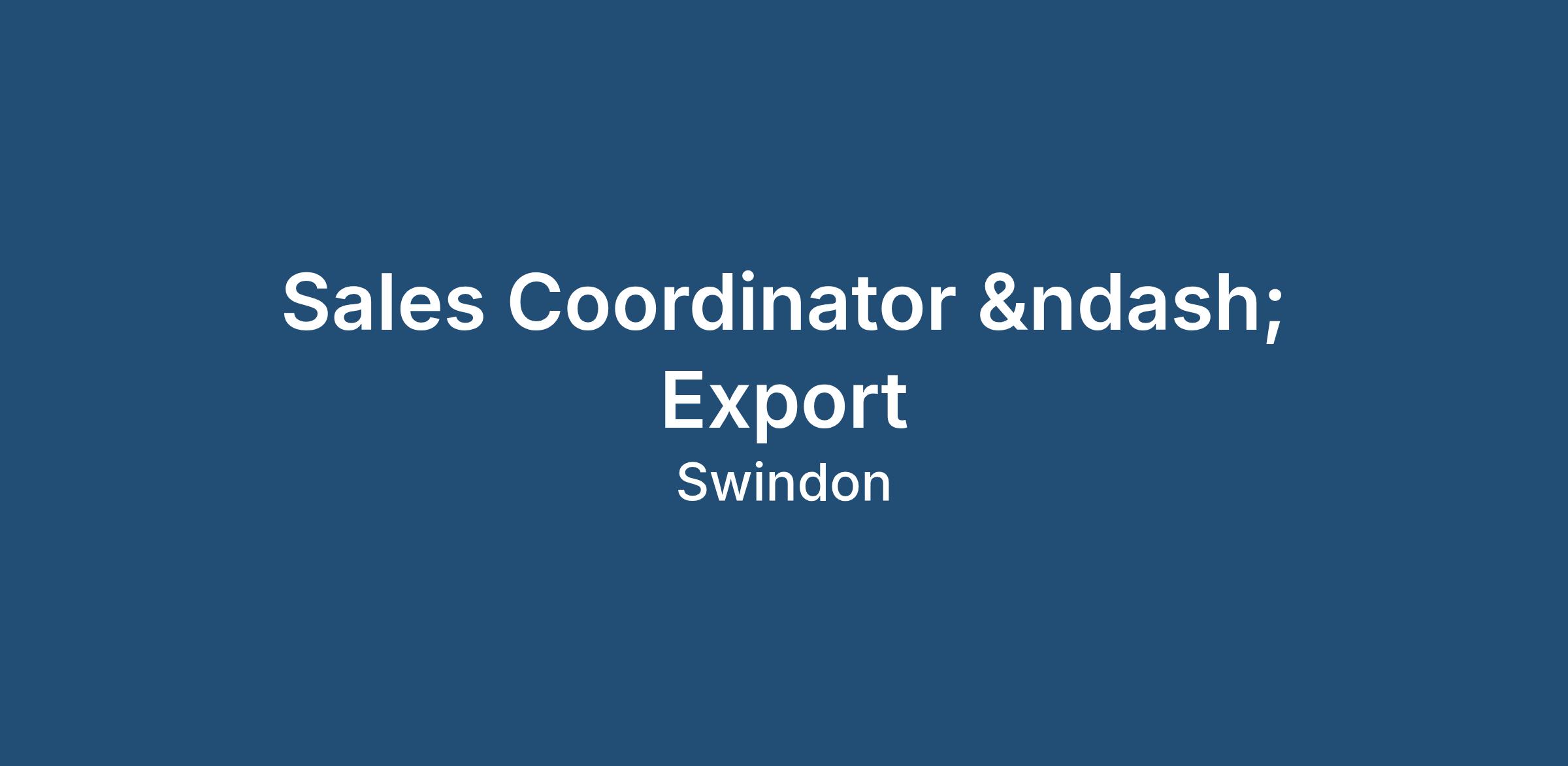 We are currently recruiting for a Sales Coordinator – Export to join our client based in Swindon.