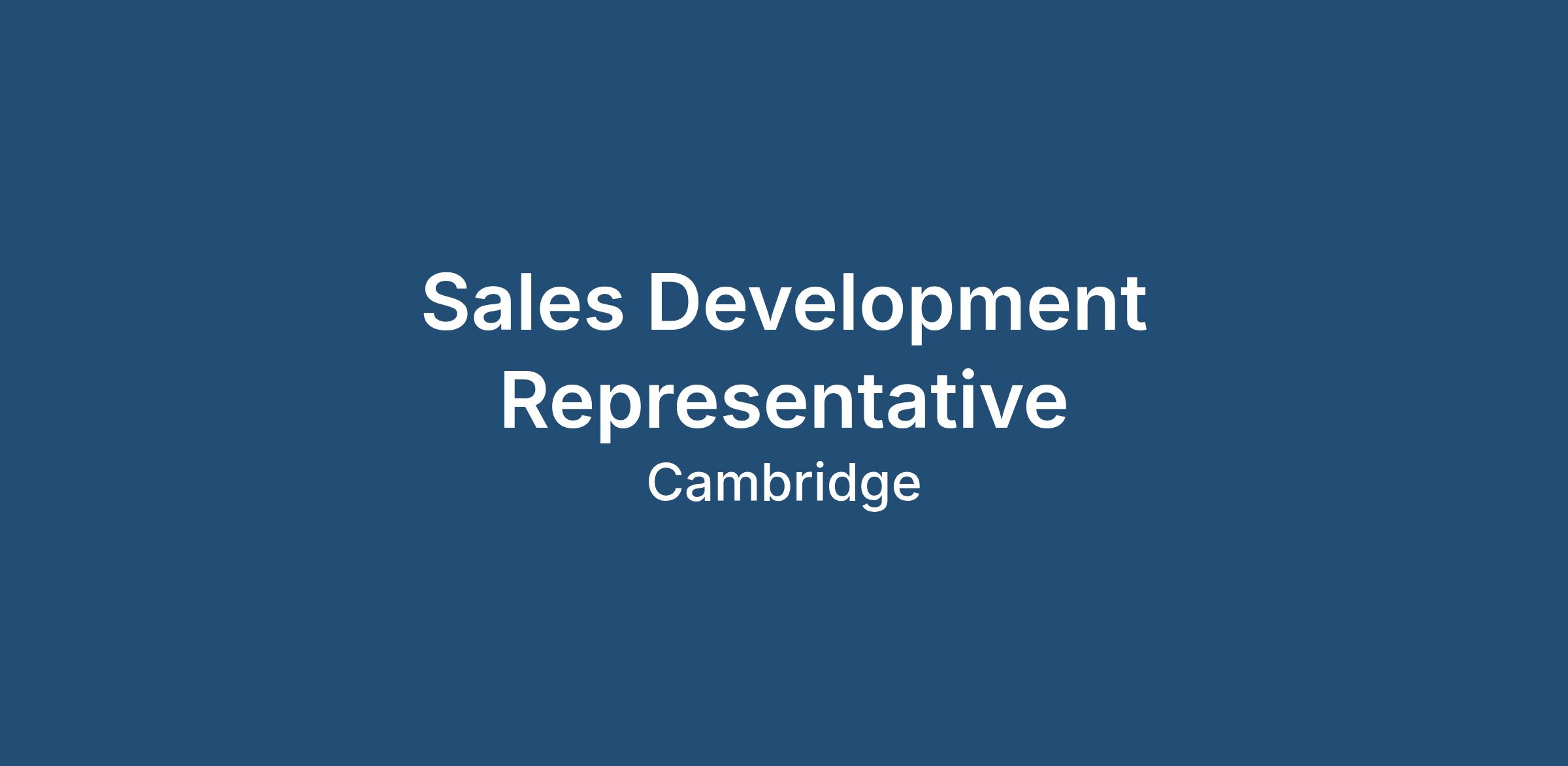 An innovative and fast-growing technology company based in Cambridge is looking for a motivated Sales Development Representative to join its expanding commercial team.