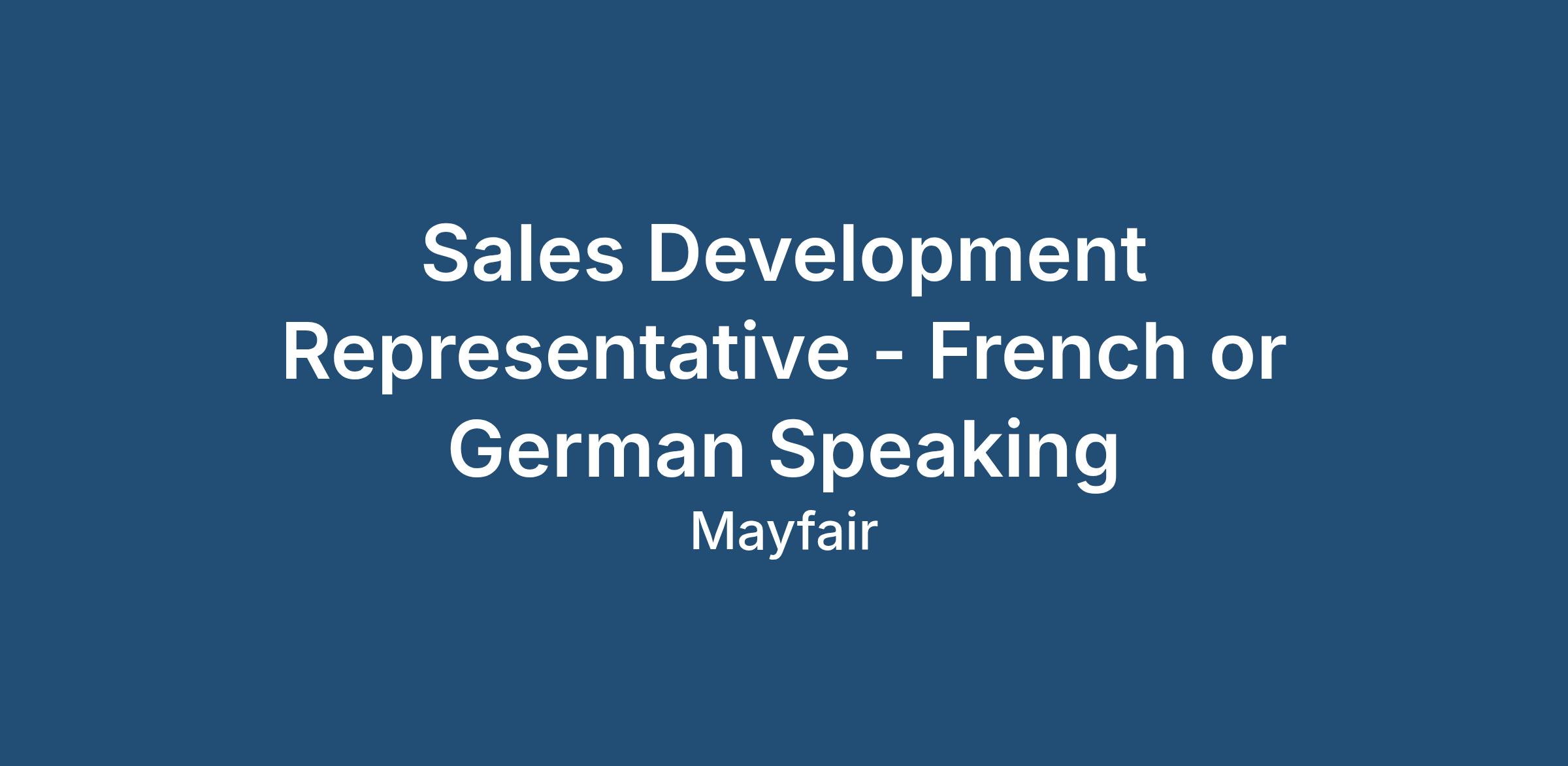 SALES DEVELOPMENT REPRESENTATIVE - FRENCH OR GERMAN SPEAKING