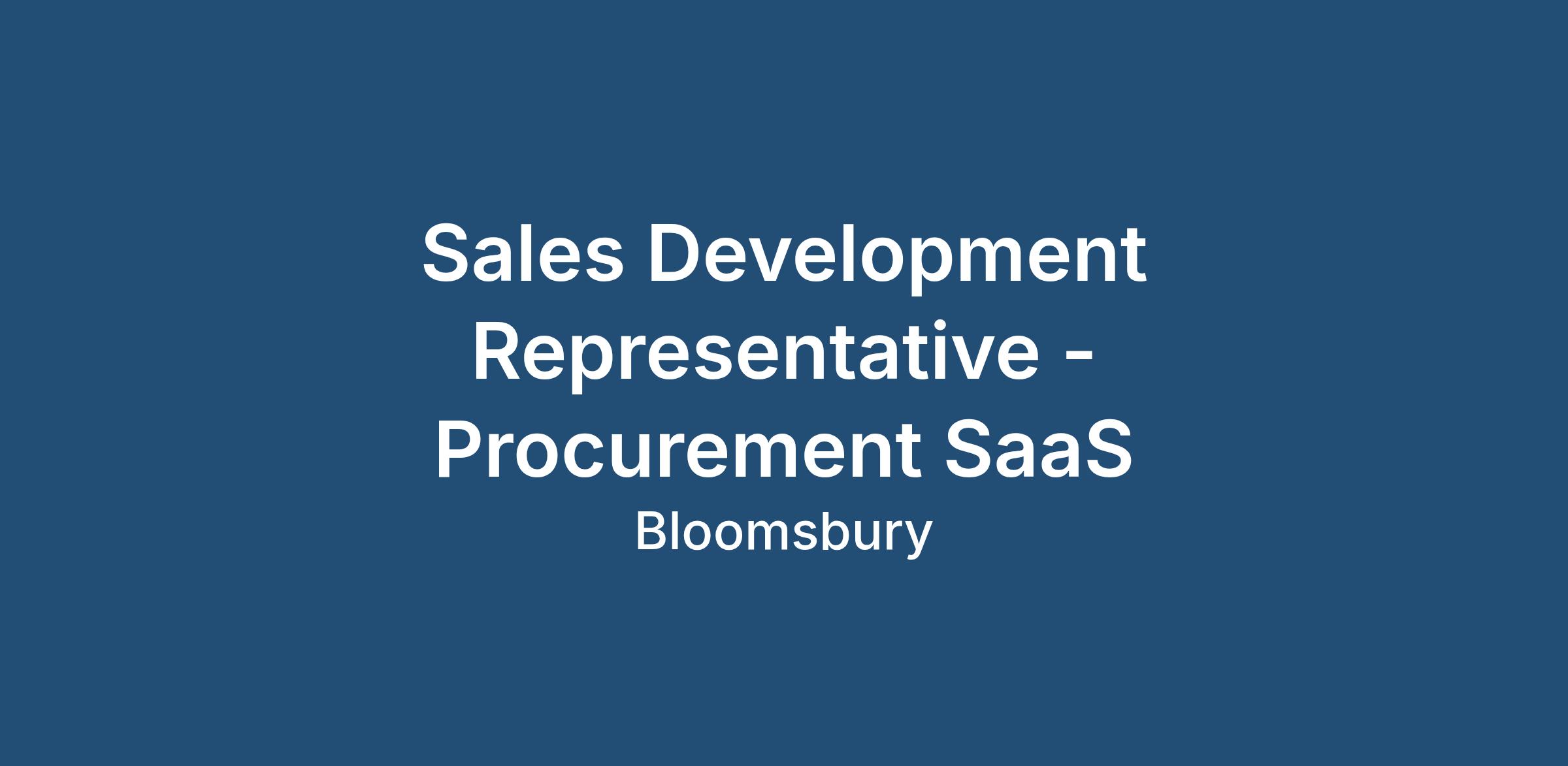 IT Sales: Sales Development Representative – Procurement SaaS