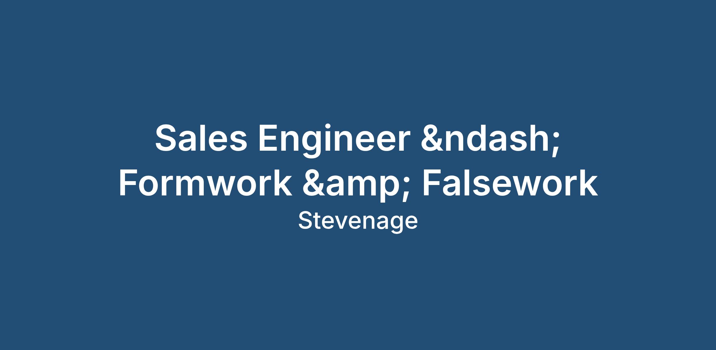 The ideal applicant will be a Formwork & Falsework Sales engineer with: