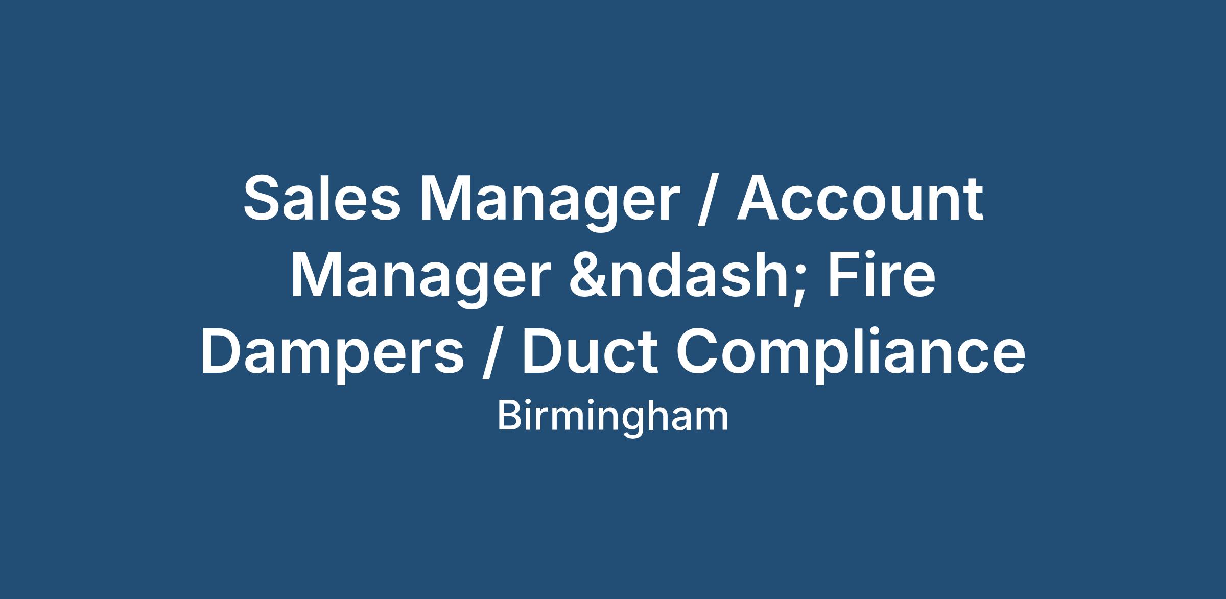 Sales Manager / Account Manager - Fire Dampers / Duct Compliance