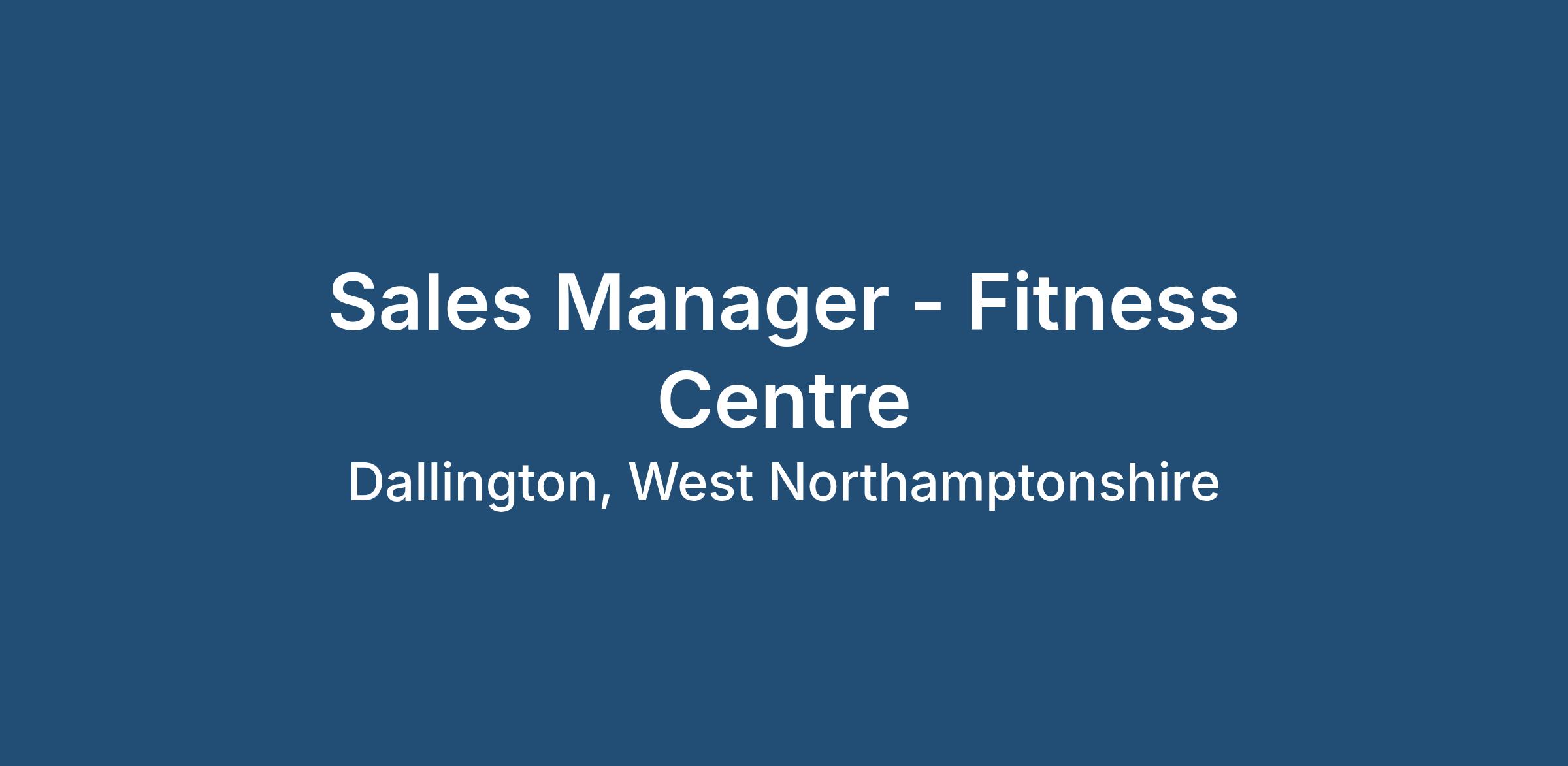 Sales Manager - Fitness Centre