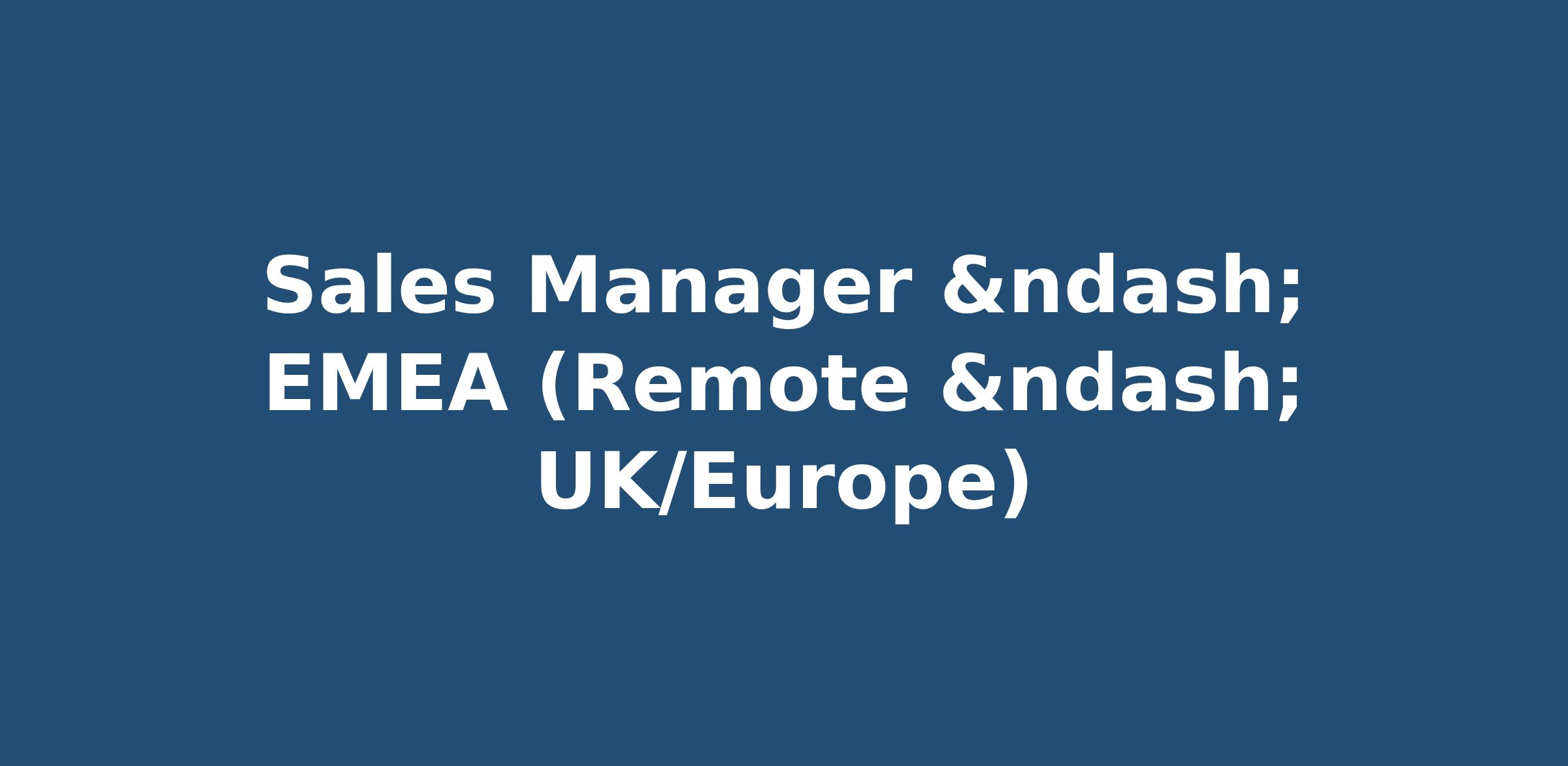 Sales Manager – EMEA (Remote – UK/Europe)