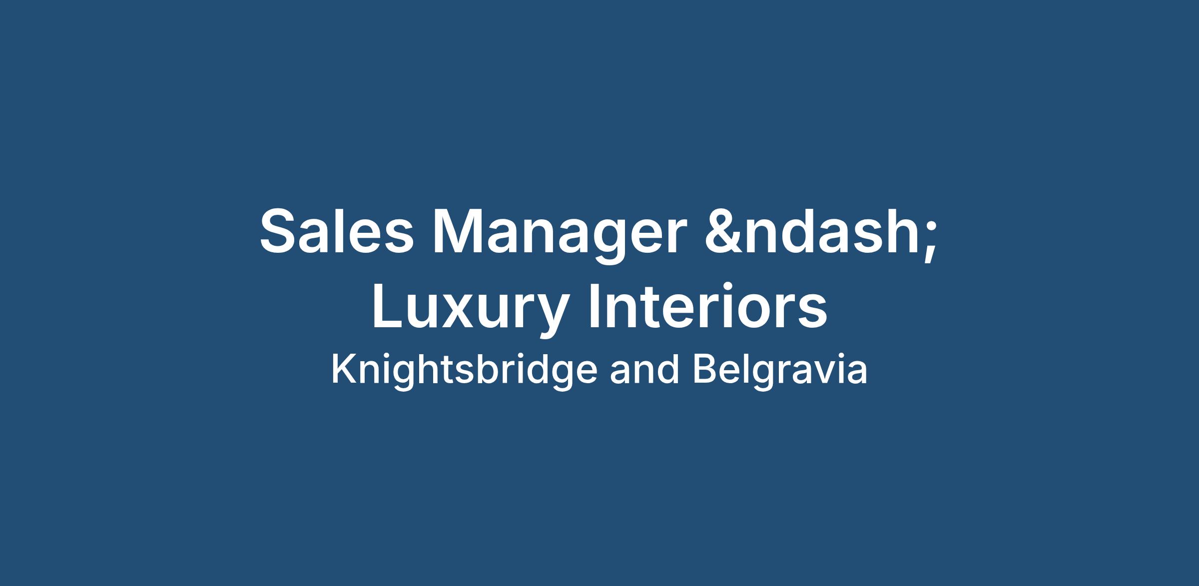 We’re looking for an experienced Sales Manager who really understands the luxury design world — interiors, kitchens, bathrooms, furniture and ultra-high-end retail. This role will suit someone with a deep knowledge and network within London’s design and architecture community.
