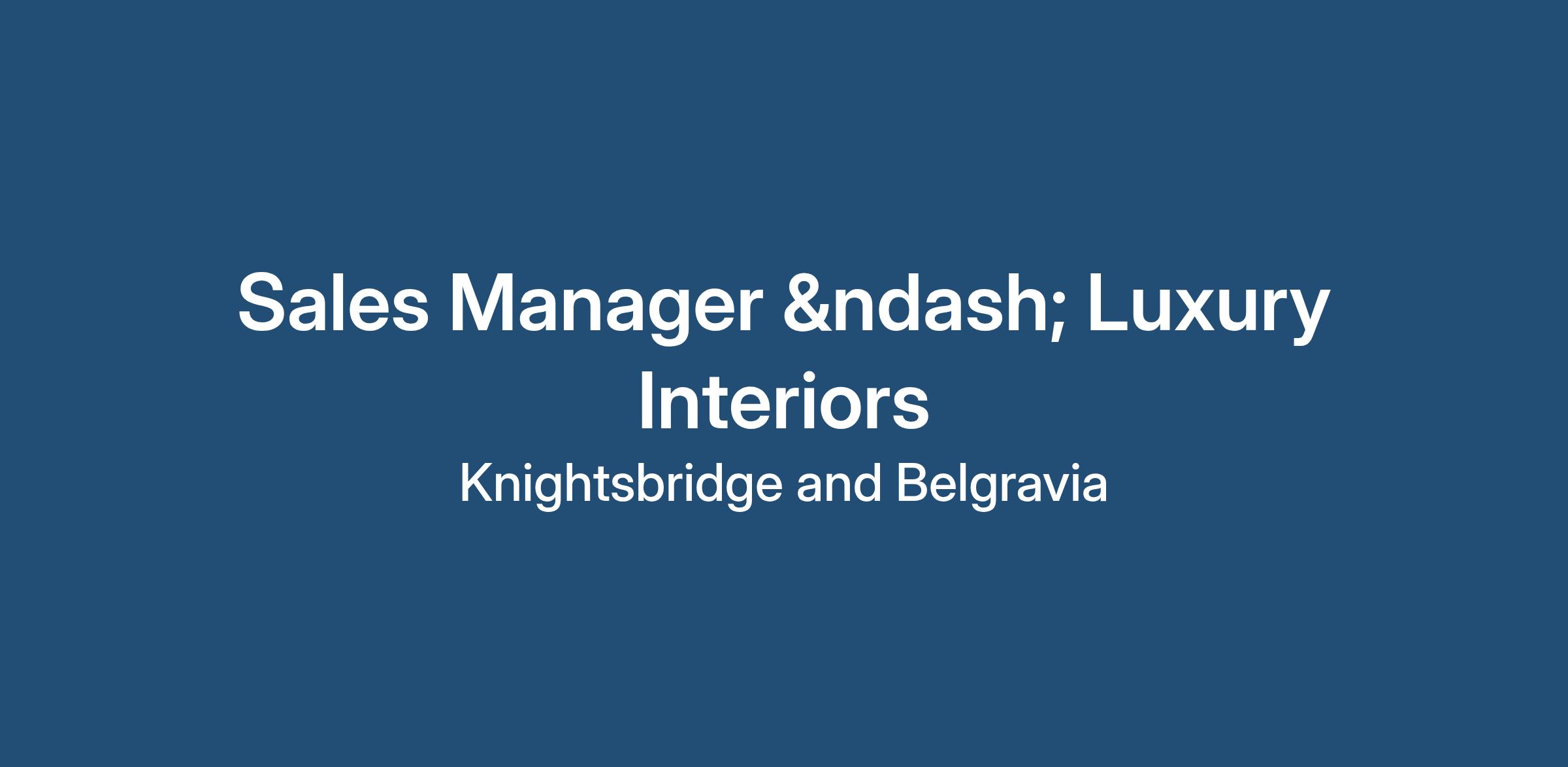 We’re looking for an experienced Sales Manager who really understands the luxury design world — interiors, kitchens, bathrooms, furniture and ultra-high-end retail. This role will suit someone with a deep knowledge and network within London’s design and architecture community.