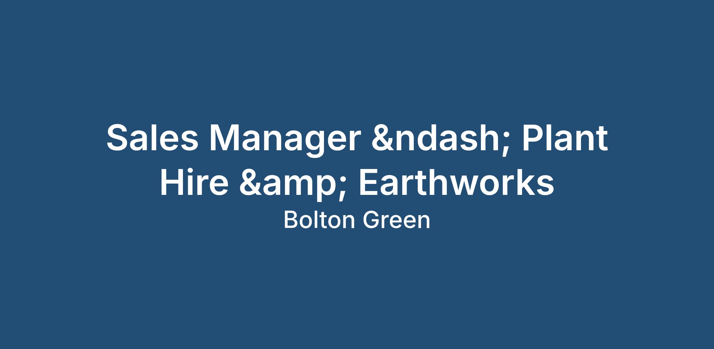 Sales Manager – Plant Hire & Earthworks