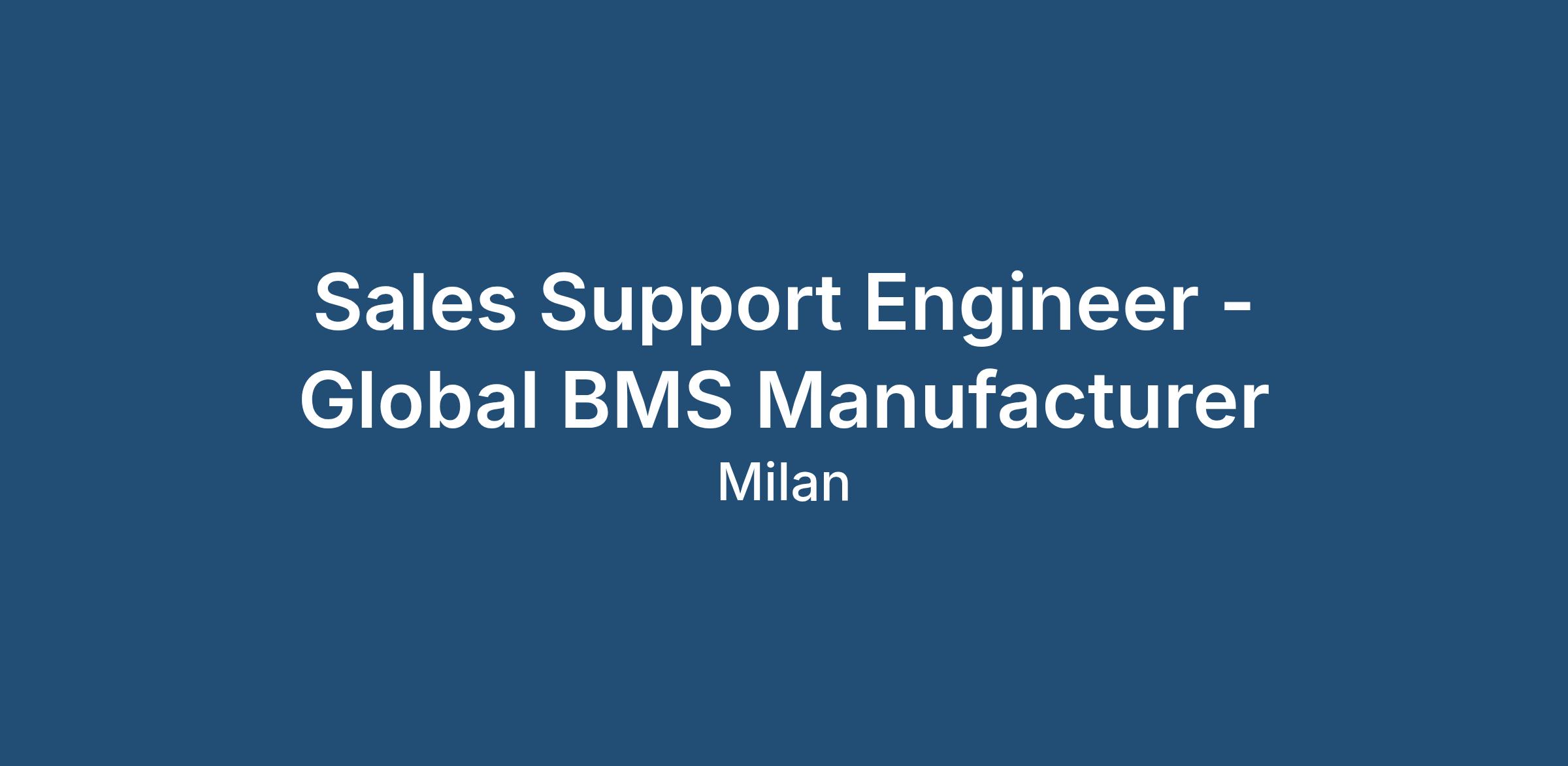 My client is a leading global BMS Manufacturer who are looking to hire a Sales Support Engineer ( SSE ) in Italy working from a home office in a remote working position.