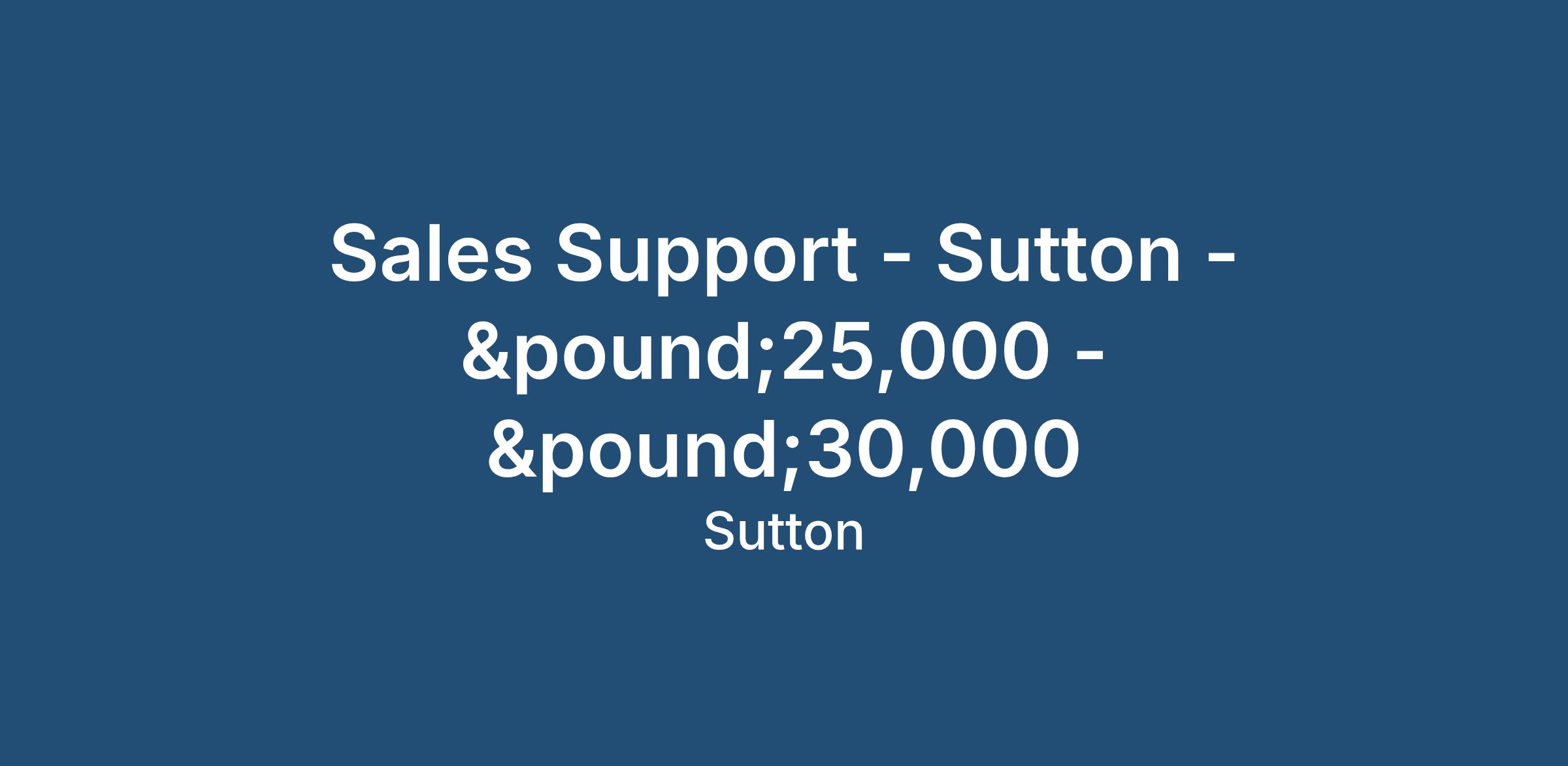 Sales Support Representative – Global Company – Sutton - £26,000 - £30,000