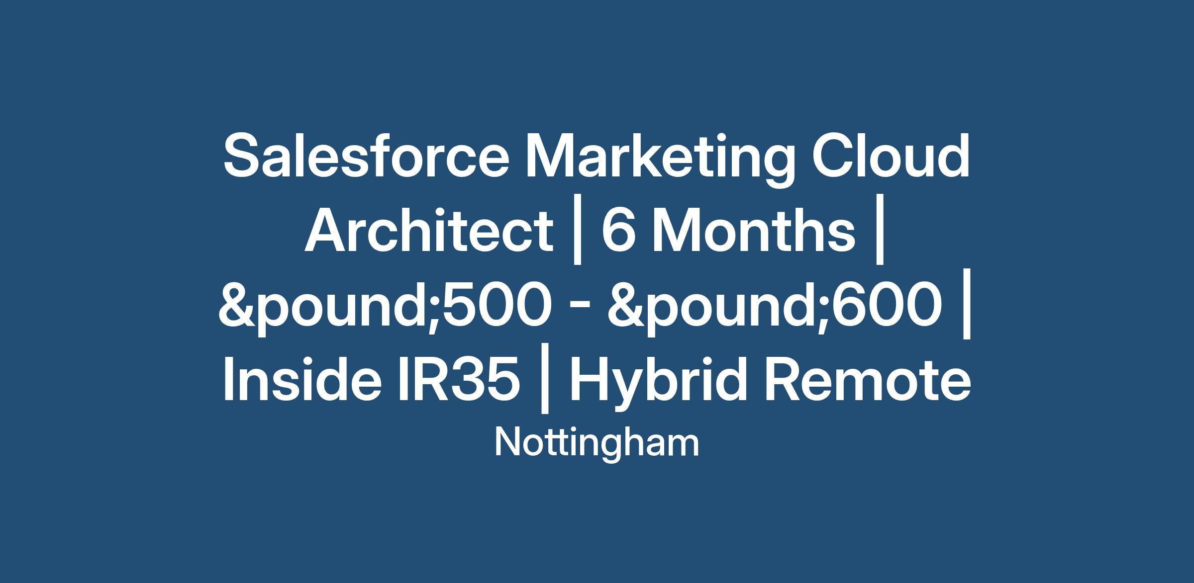 Salesforce Marketing Cloud Architect | 6 Months | £500 - £600 | Inside IR35 | Hybrid Remote