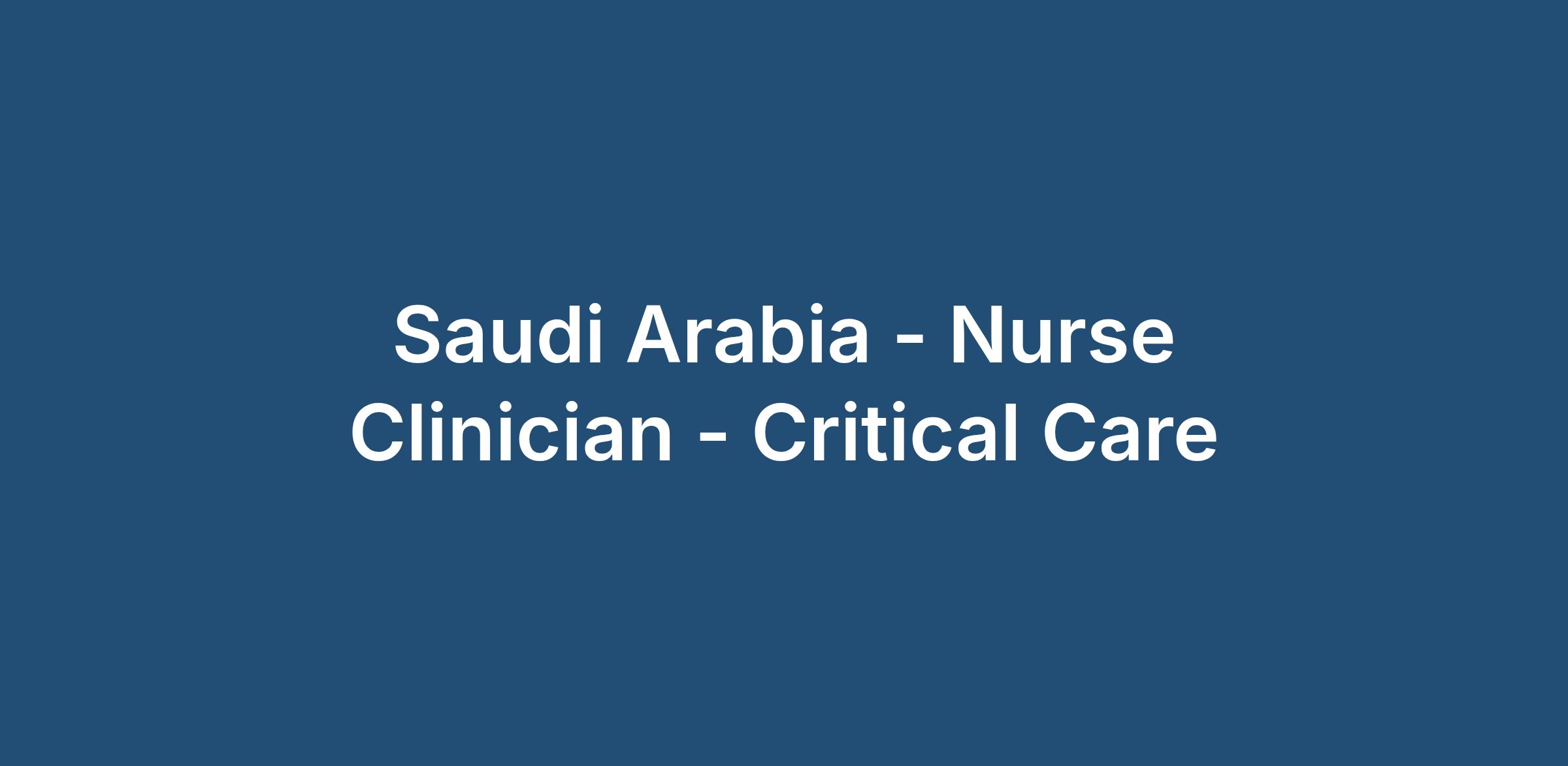 PE Globa Healthcare is currently working with a prestigious hospital in Saudi Arabia who is looking to hire Nurse Clinician - Critical Care