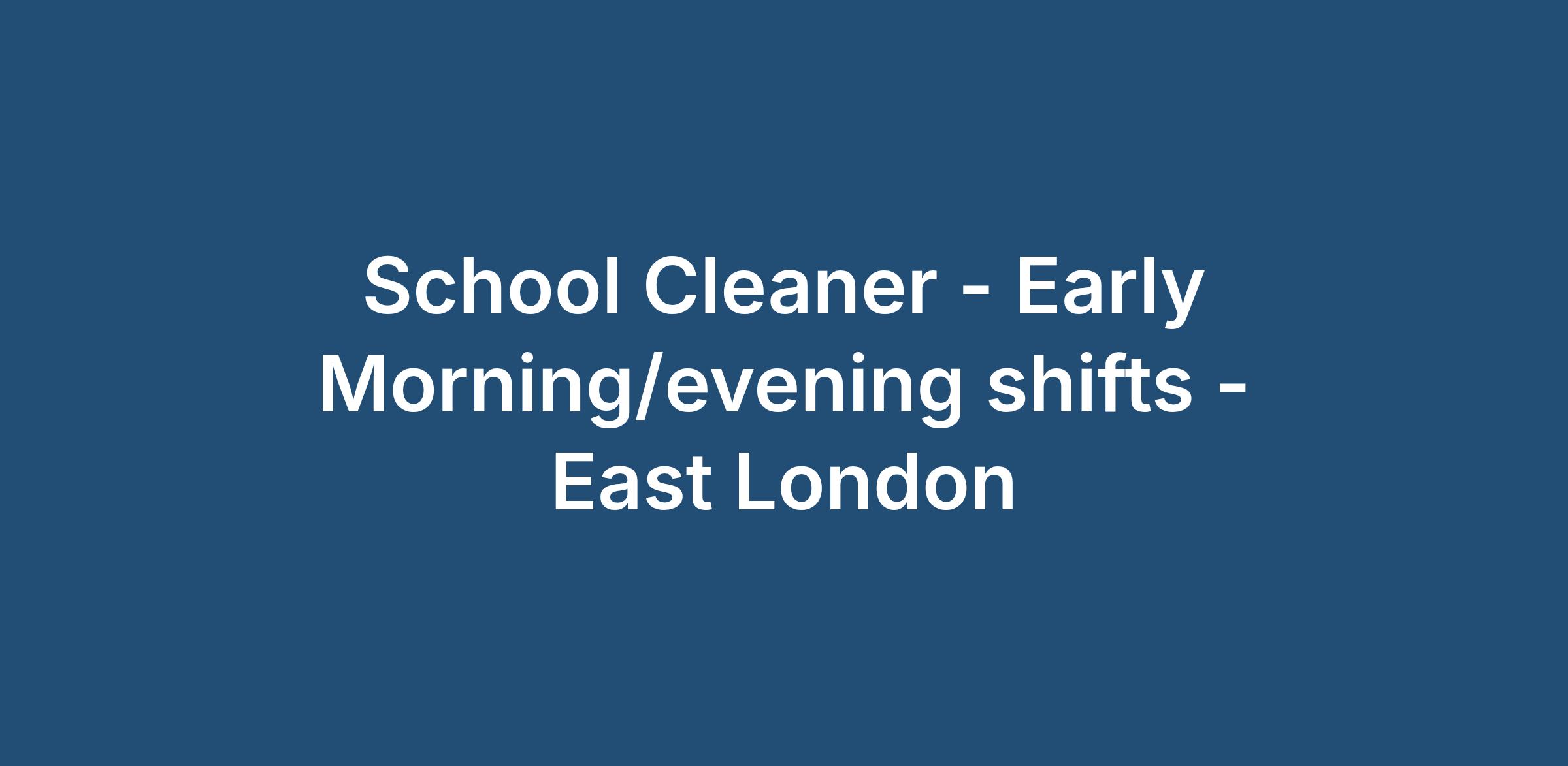 School Cleaner - Early Morning/evening shifts - East London