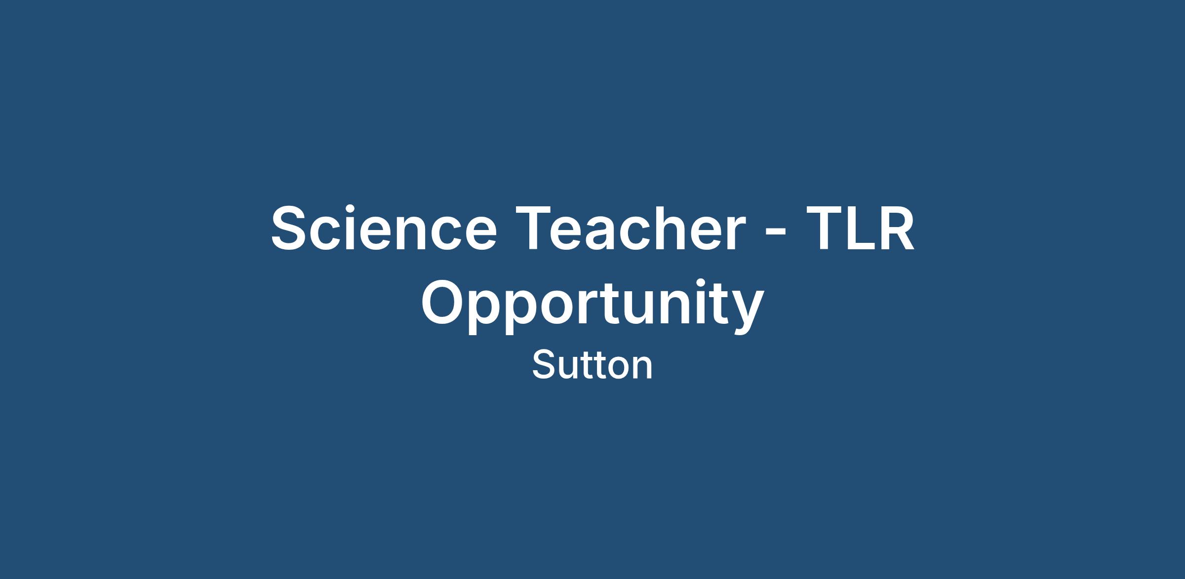 If you're interested in this Science Teacher - TLR Opportunity - Sutton position, please apply today.