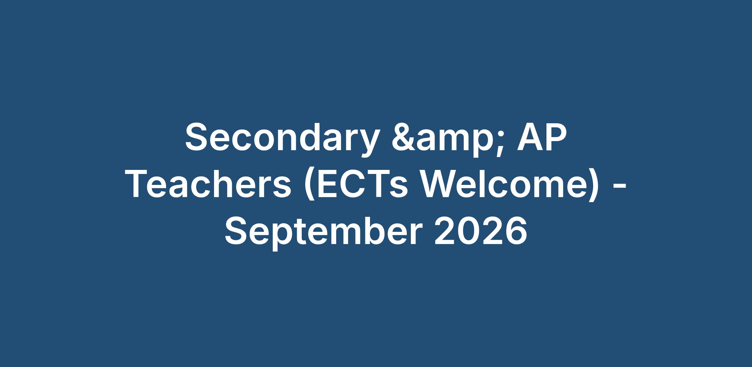 Secondary & AP Teachers (ECTs Welcome) - September 2026