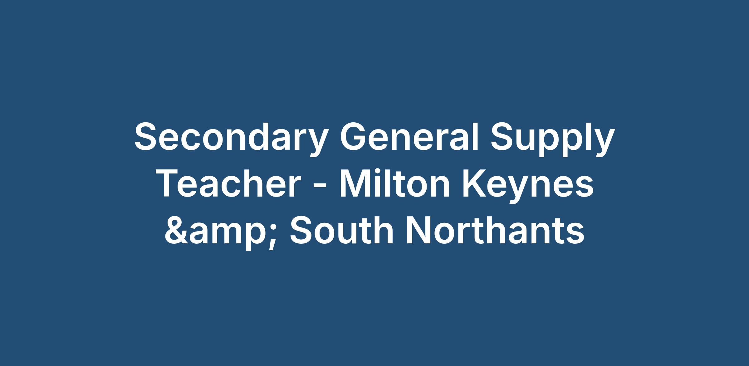 Secondary General Supply Teacher - Milton Keynes & South Northants