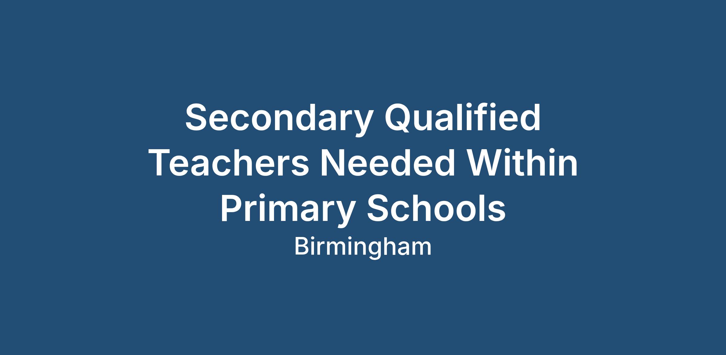 Aspire People are currently searching for Secondary Qualified Teachers to work within Key Stage 2 in Primary Schools.
