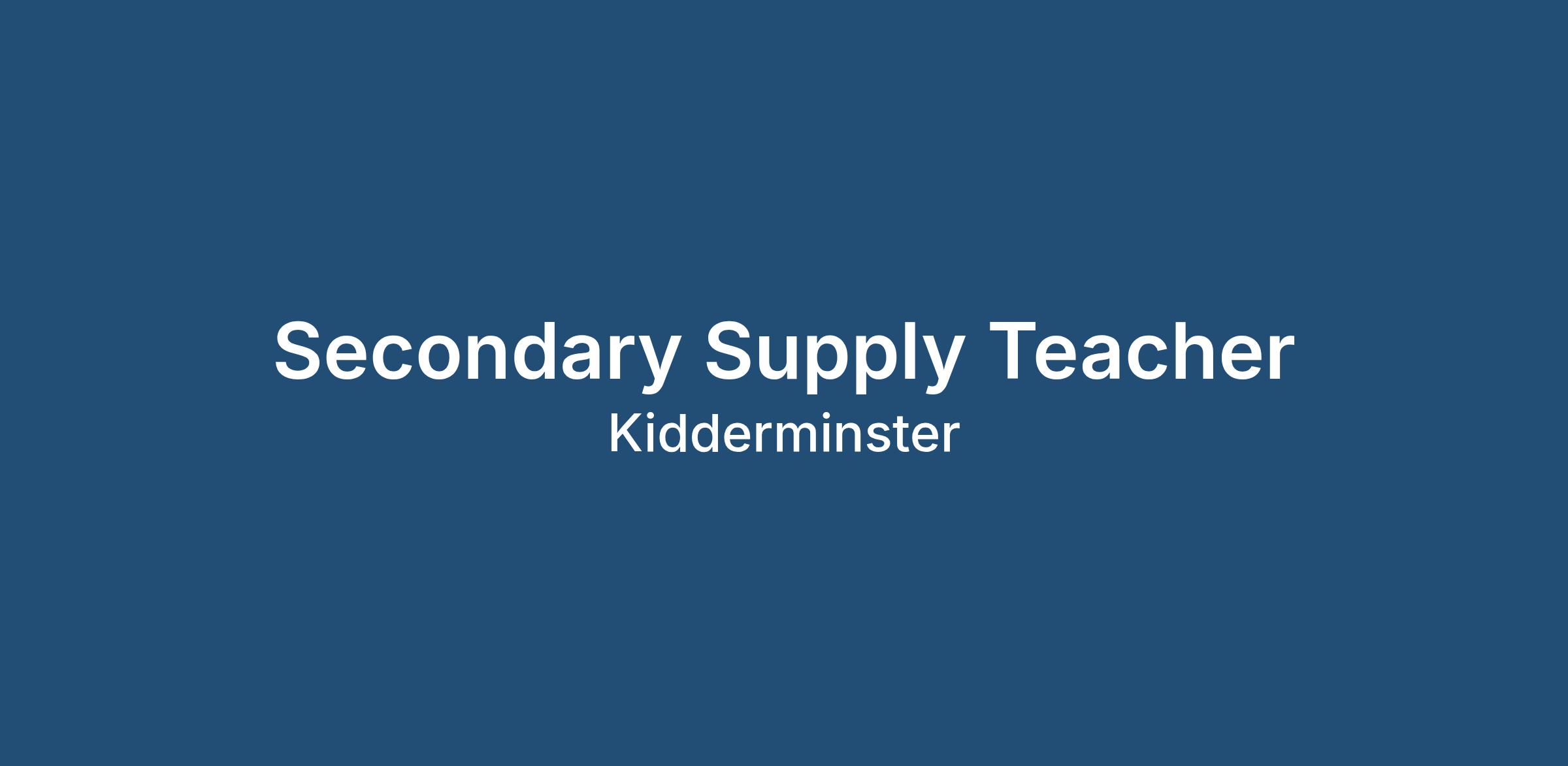 Secondary Supply Teacher - daily supply teaching - Kidderminster and surrounding areas