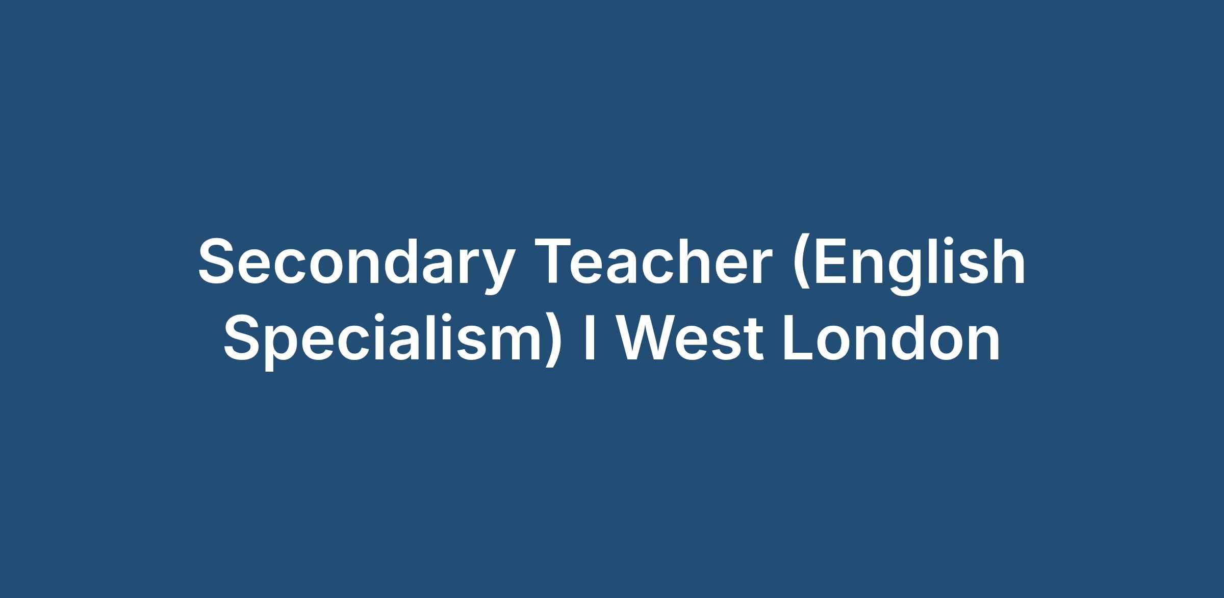 Secondary Teacher (English Specialism) I West London
