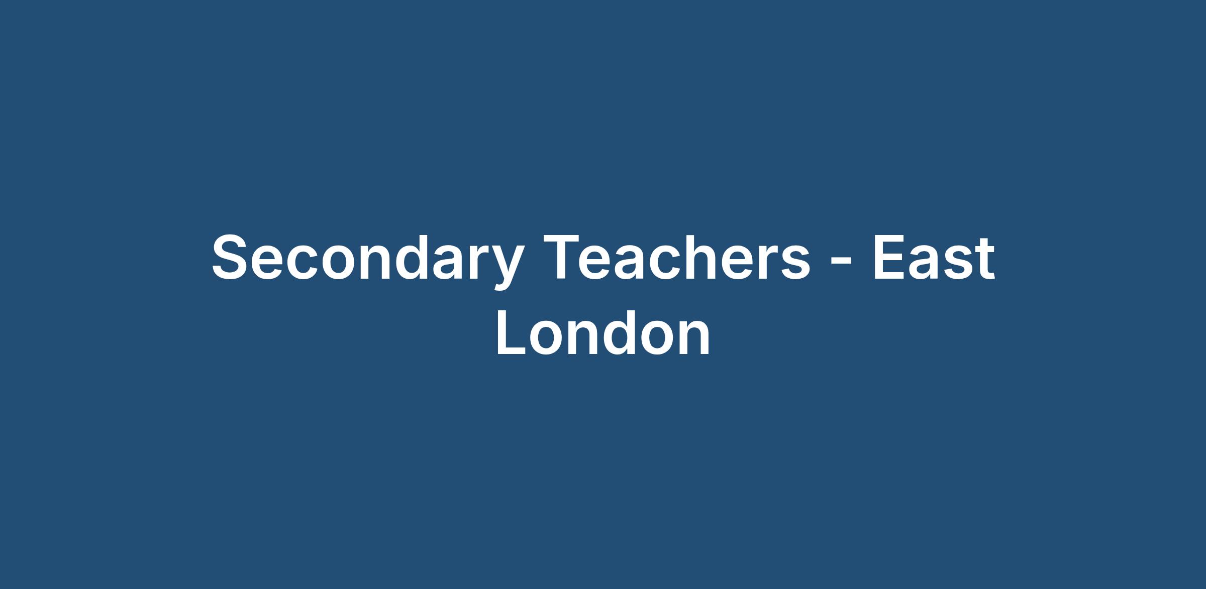 Secondary Teachers | East London | Multiple Permanent Roles | Sept 2026