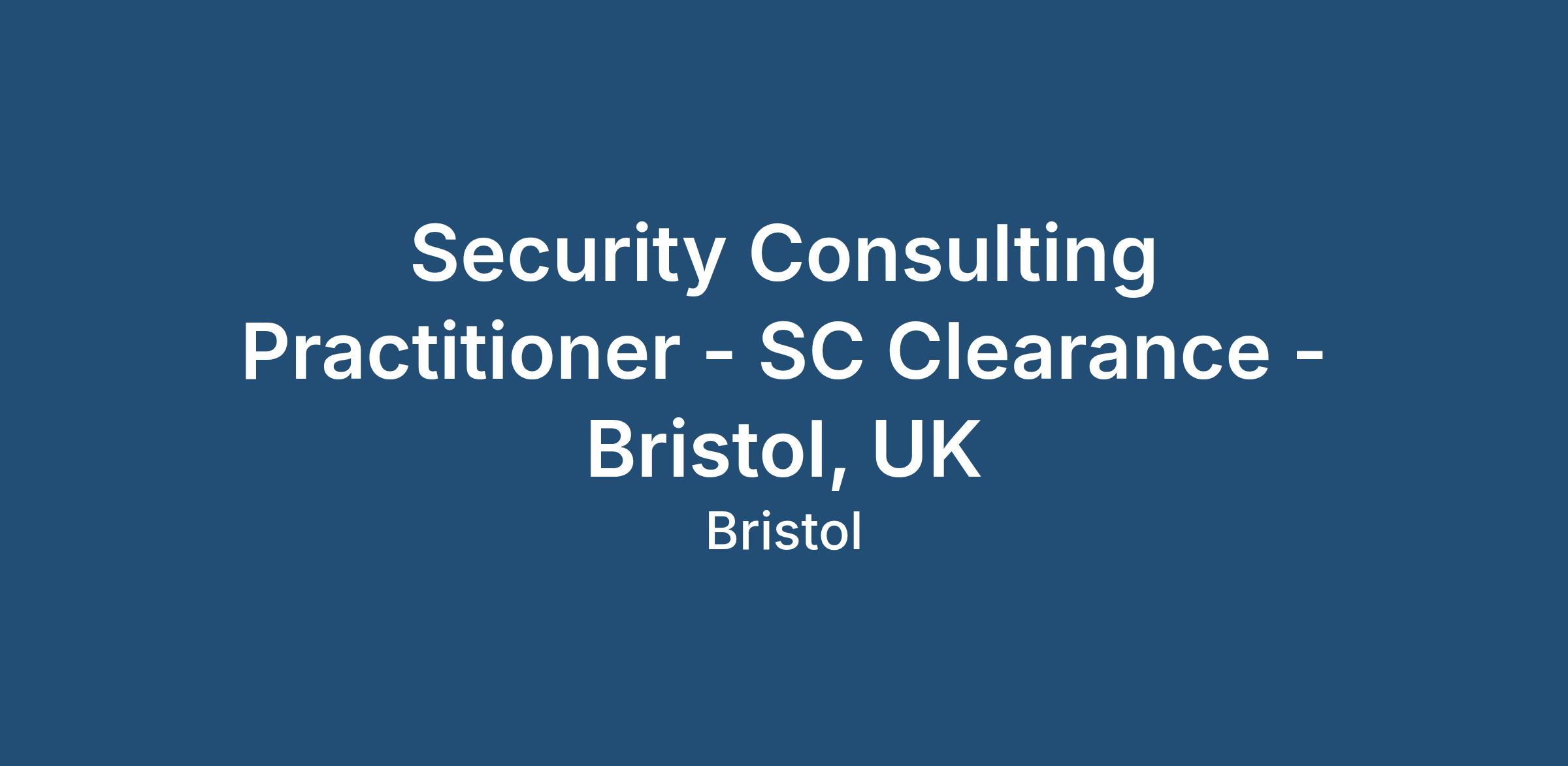 Security Consulting Practitioner - SC Clearance - Bristol, UK