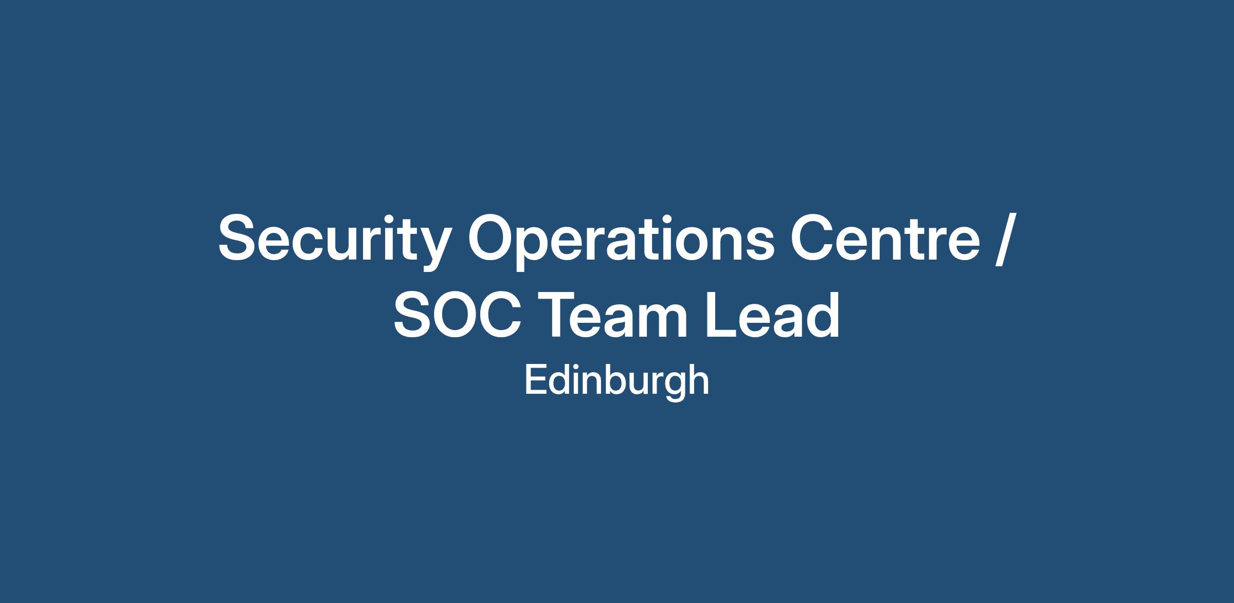 Security Operations Centre / SOC Team Lead