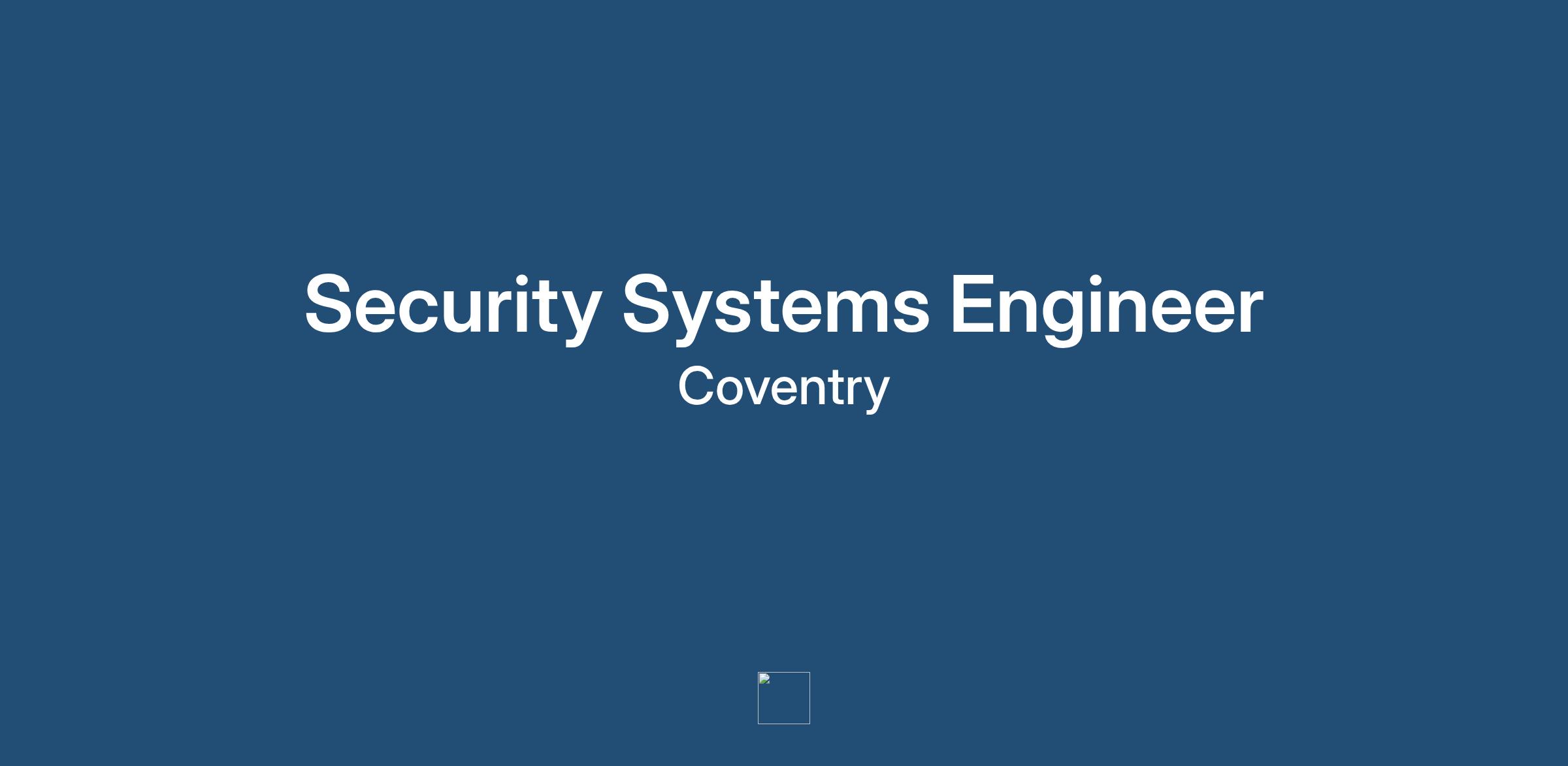 Security Systems Engineer – Coventry – Basic Salary £28,000 - £43,000 Per Annum