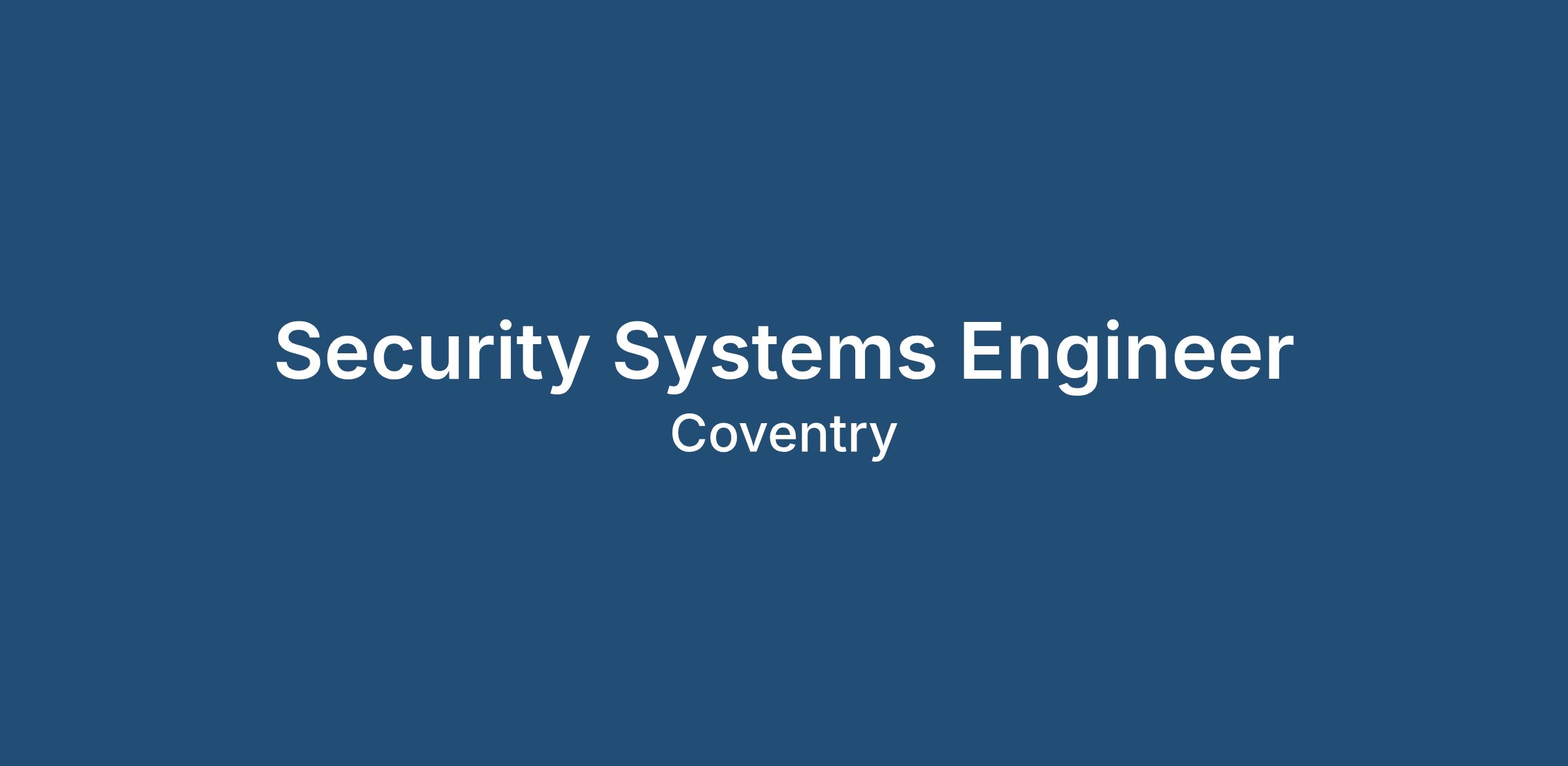 Security Systems Engineer – Coventry – Basic Salary £28,000 - £43,000 Per Annum