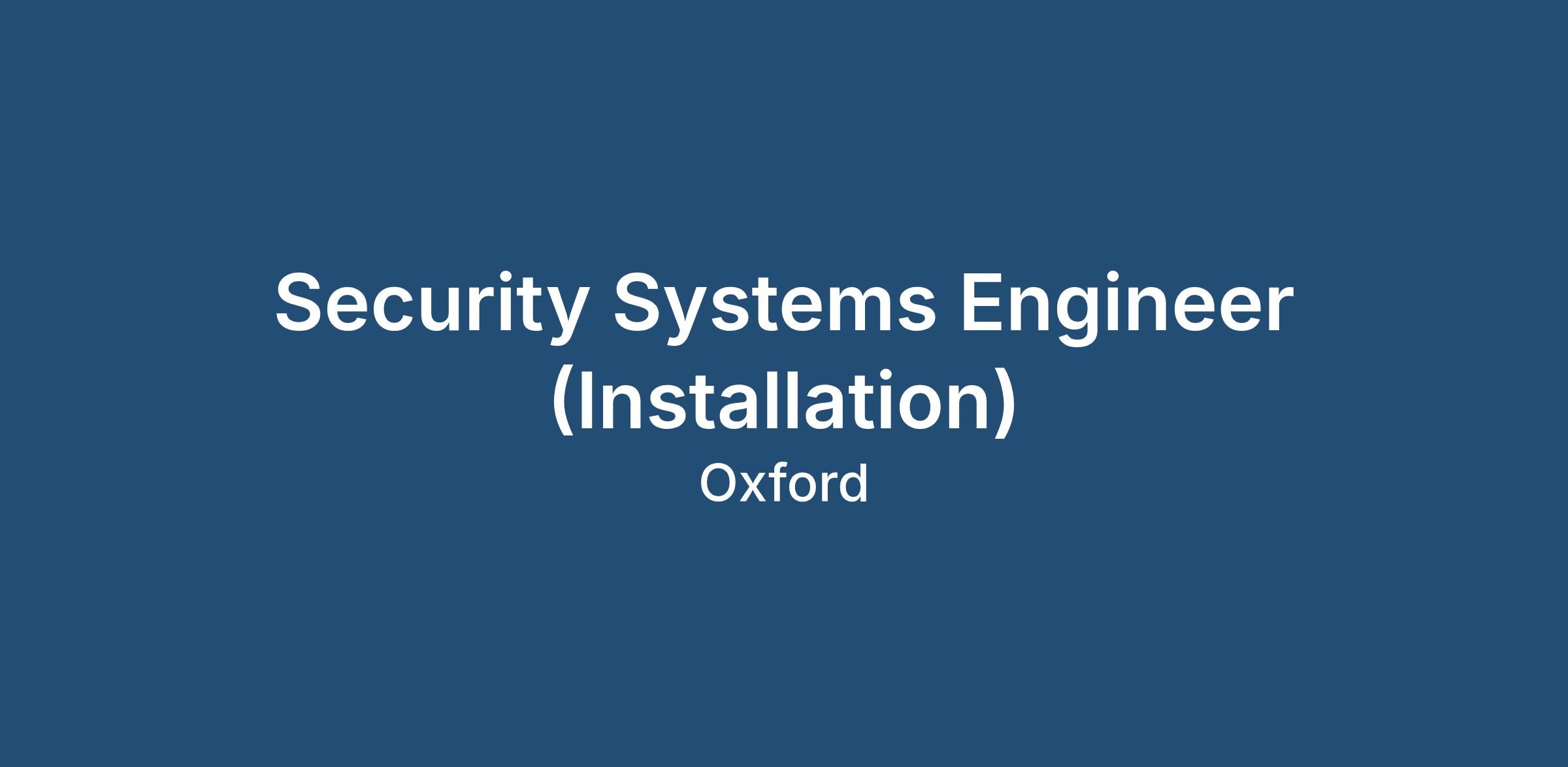 Security Systems Engineer (Installation)