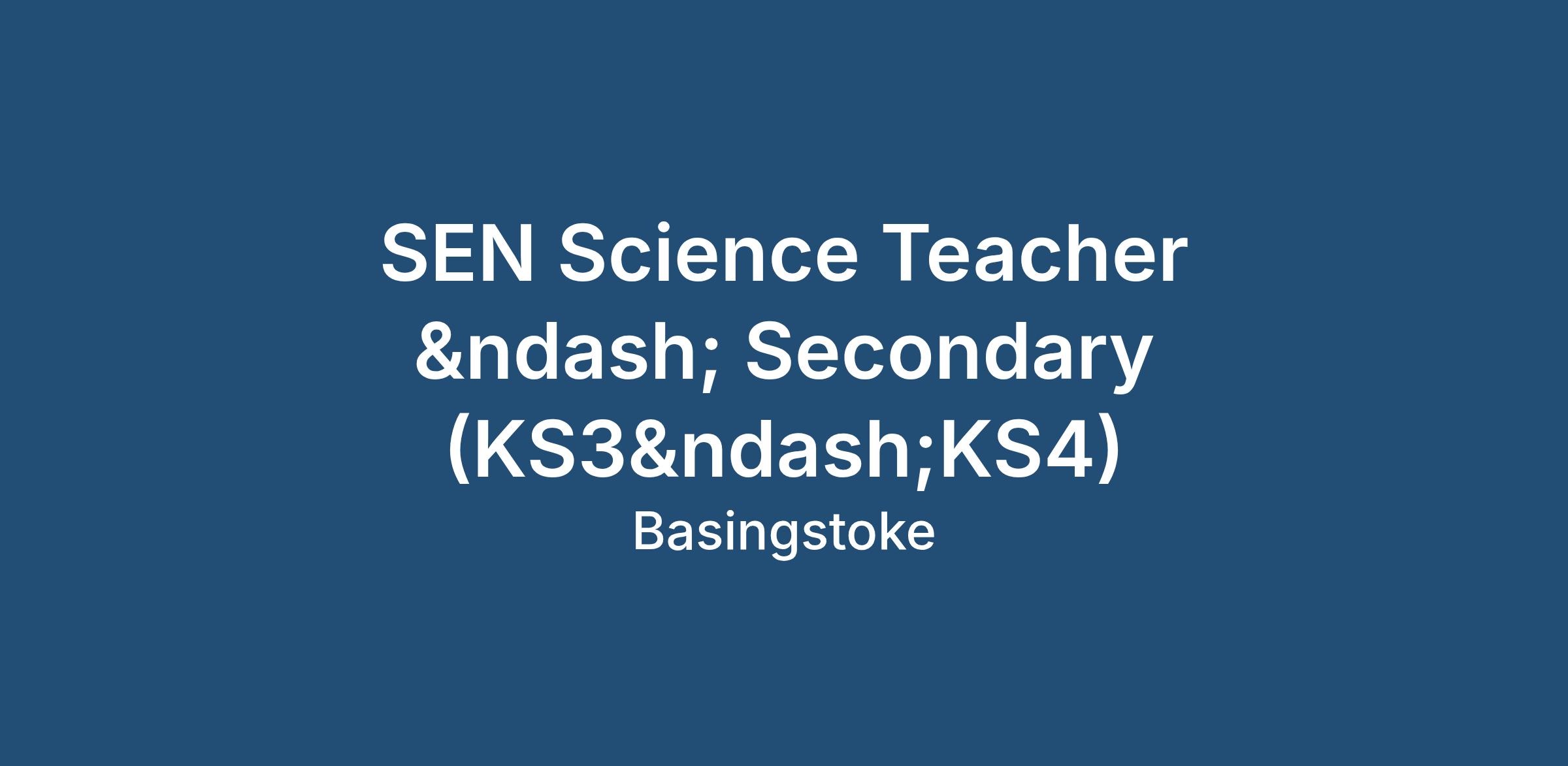 We are seeking an enthusiastic and committed SEN Science Teacher to join our specialist team. You will be responsible for delivering engaging, accessible Science lessons across KS3 and KS4, adapting the curriculum to meet the diverse needs of our learners.