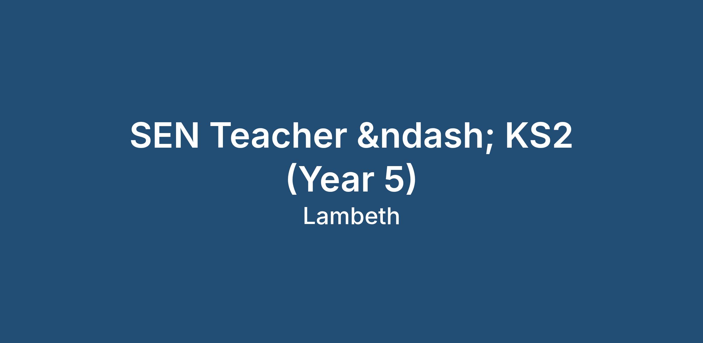 SEN Teacher – KS2 (Year 5)