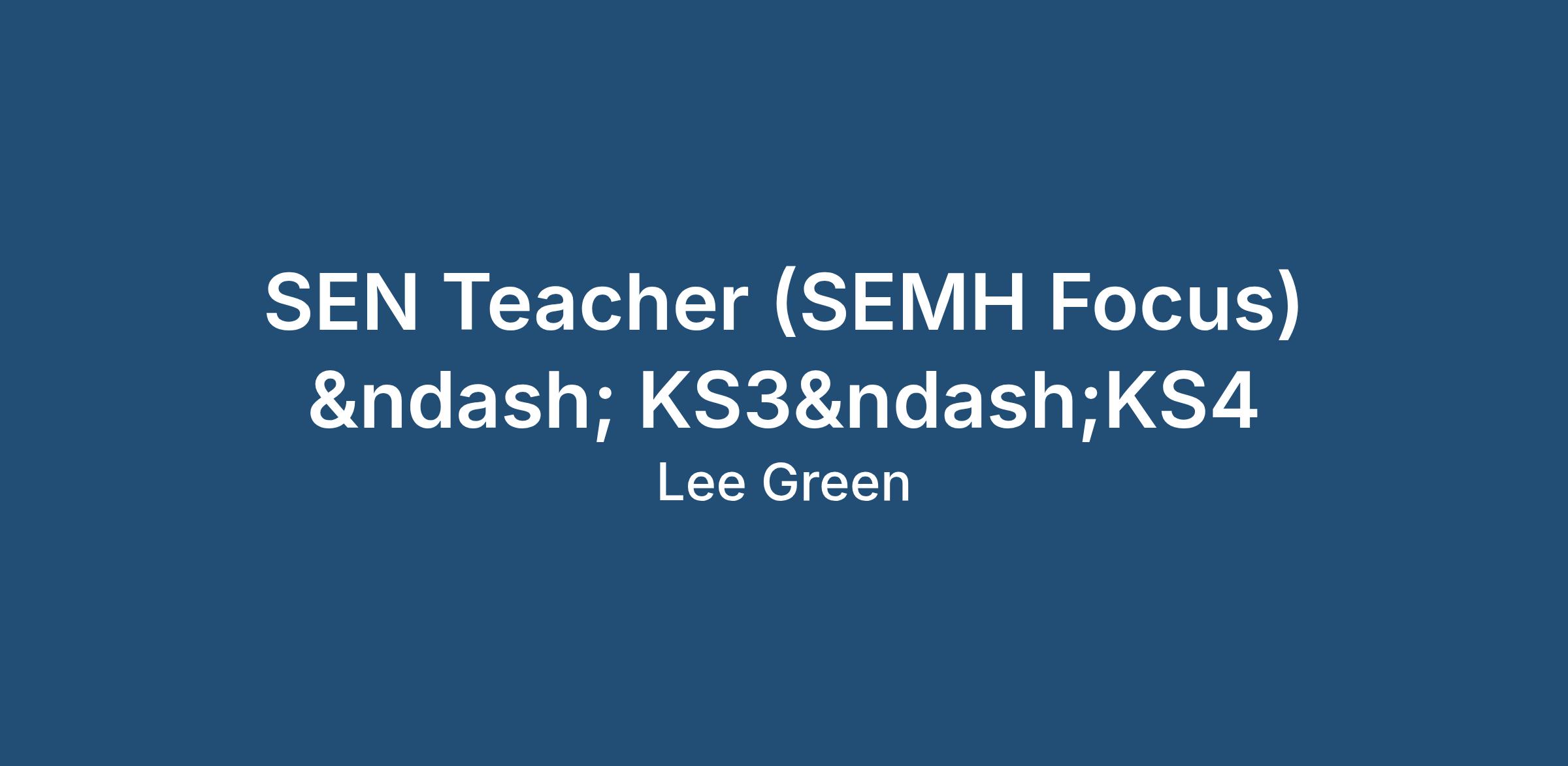 SEN Teacher (SEMH Focus) – KS3–KS4