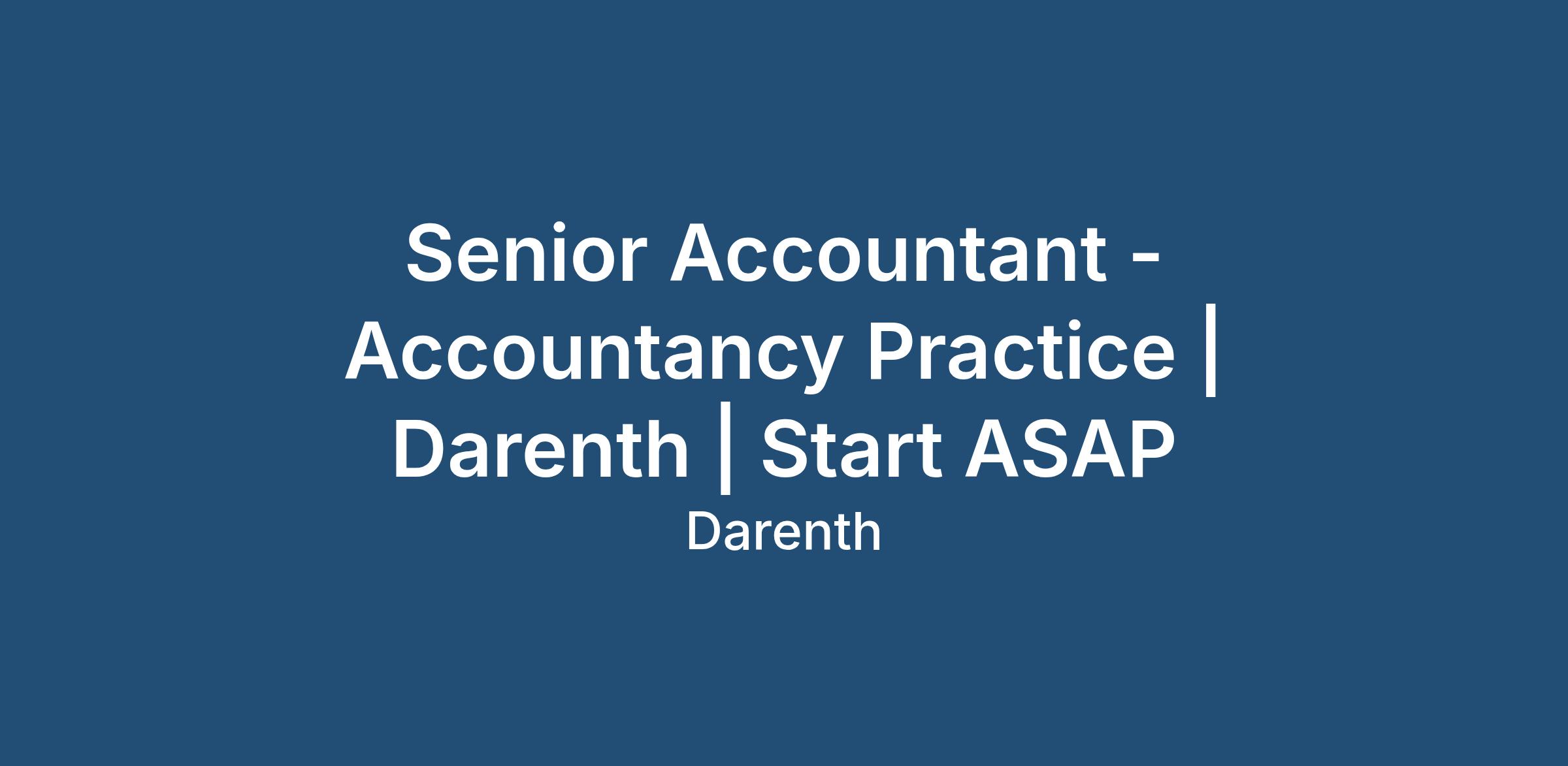 Senior Accountant - Accountancy Practice | Darenth | Start ASAP