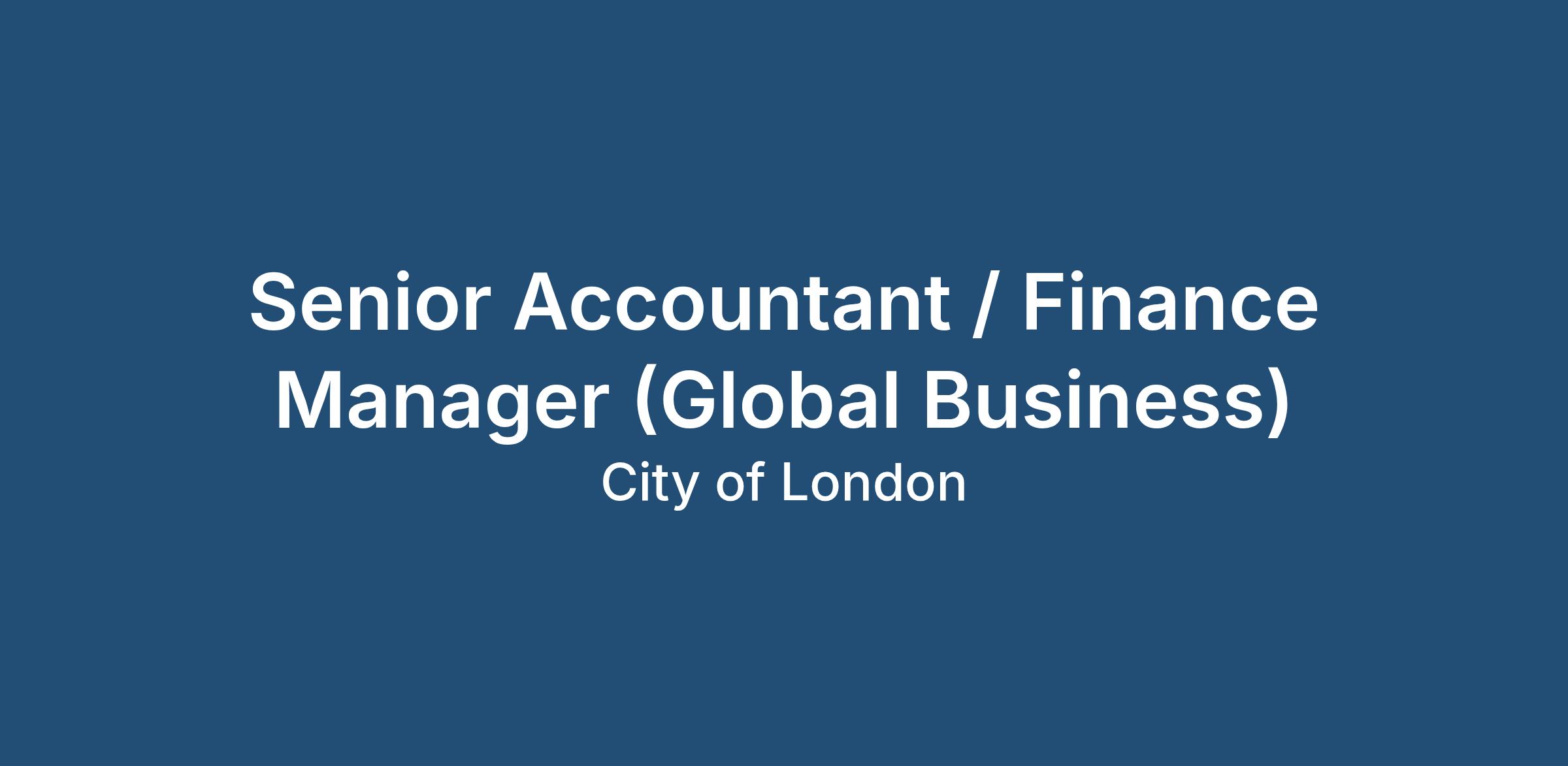 Senior Accountant / Finance Manager (Global Business)