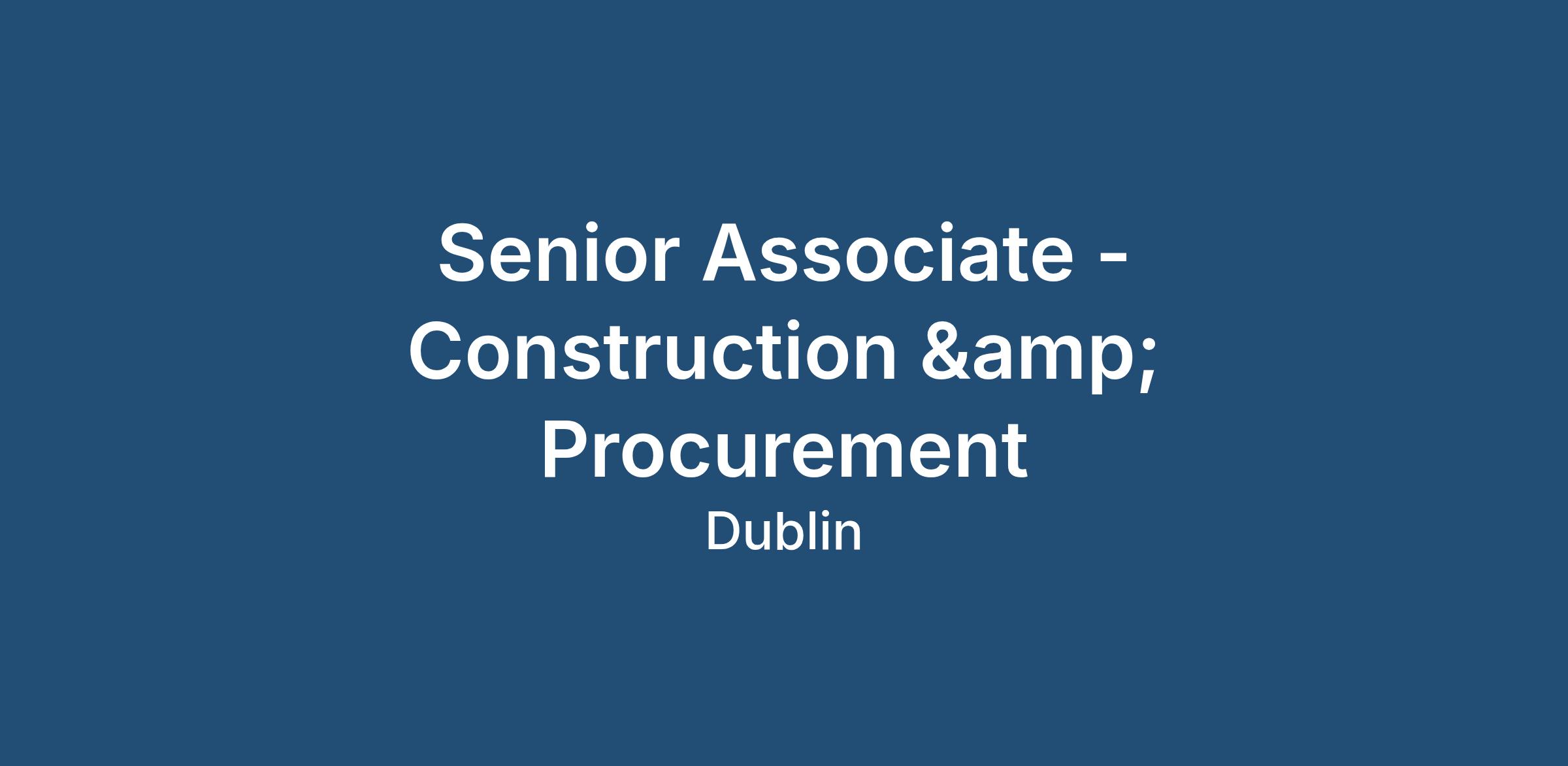 Senior Associate - Construction & Procurement