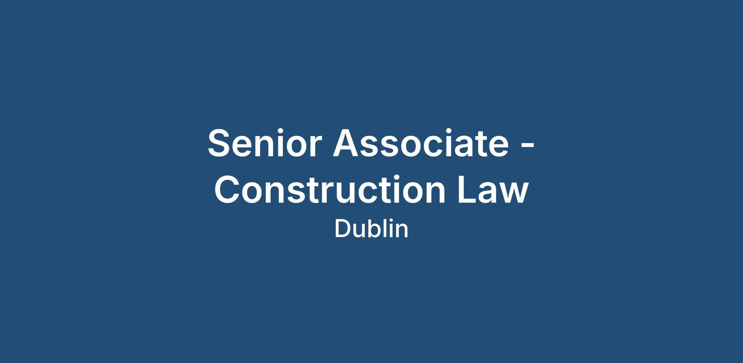A leading law firm is currently seeking an experienced Senior Associate to join its Construction and Public Procurement team in Dublin. The firm advises a wide range of clients across both the public and private sectors and has an established reputation for providing high-quality legal services within the construction and infrastructure space.