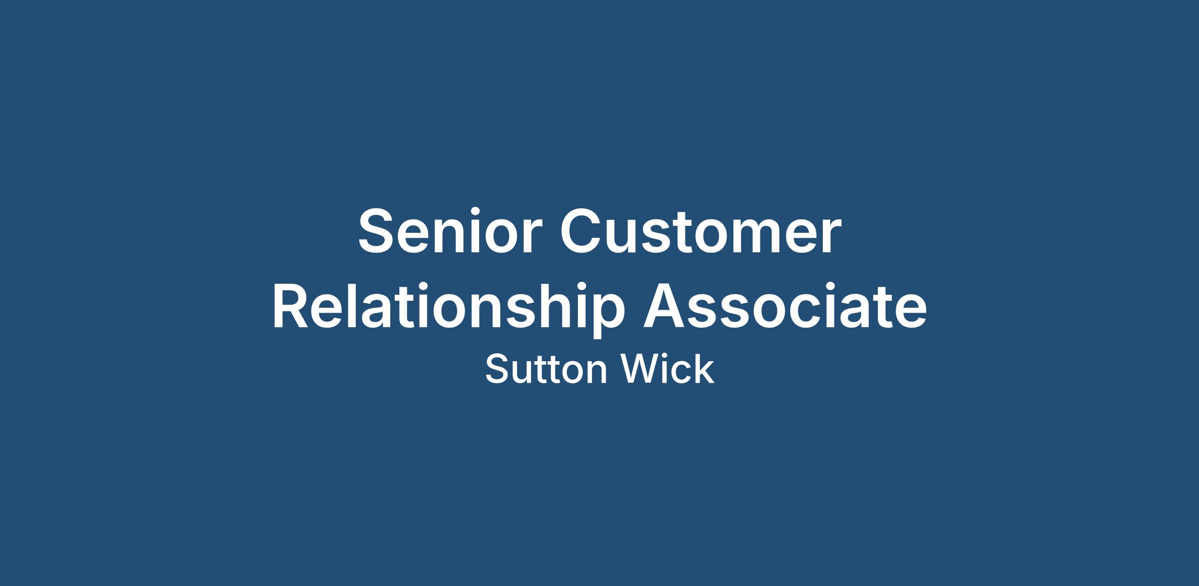 Role: Senior Customer Relationship Associate - Hybrid Working.