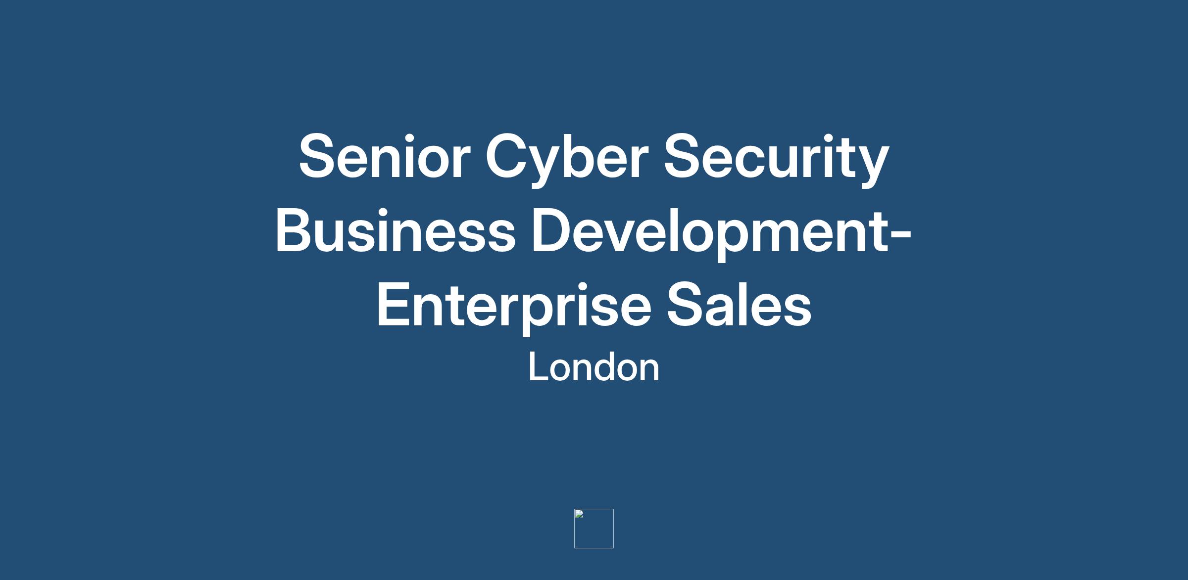 Senior Cyber Security Business Development- Enterprise Sales - London