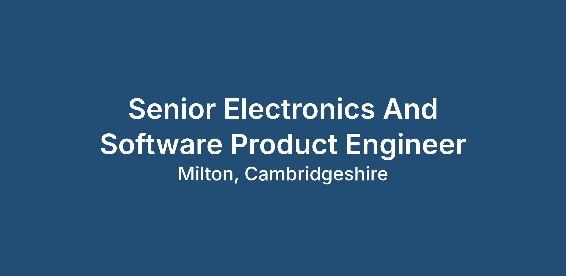 To apply for this Senior Electronics & Software Product Engineer role, please send your CV to: