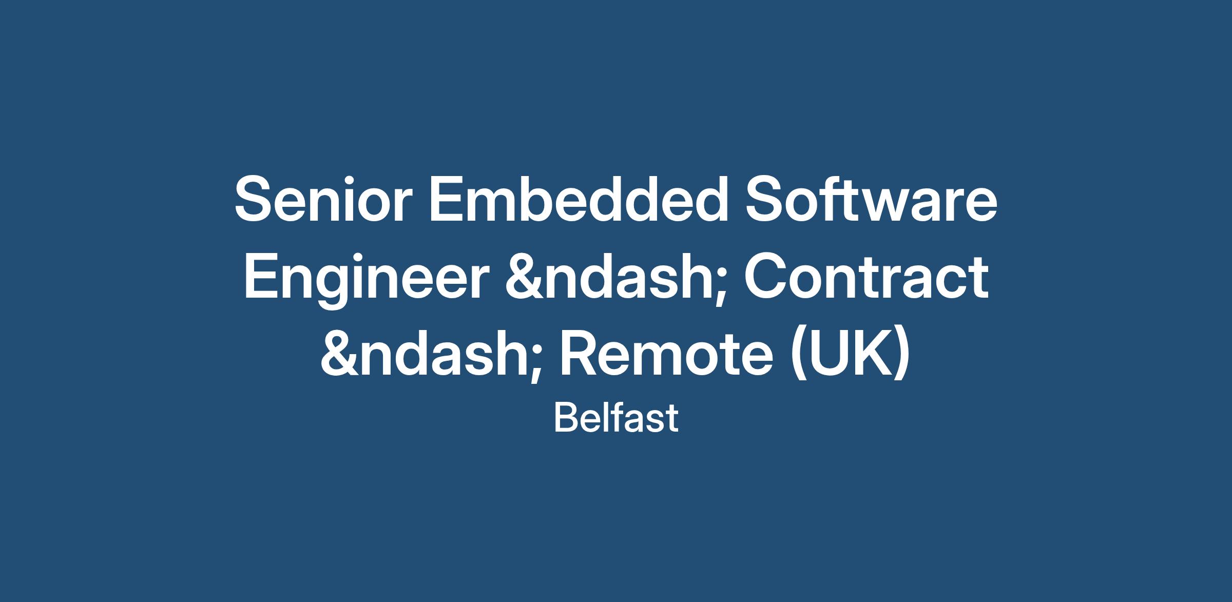 Senior Embedded Software Engineer – Contract – Remote (UK)