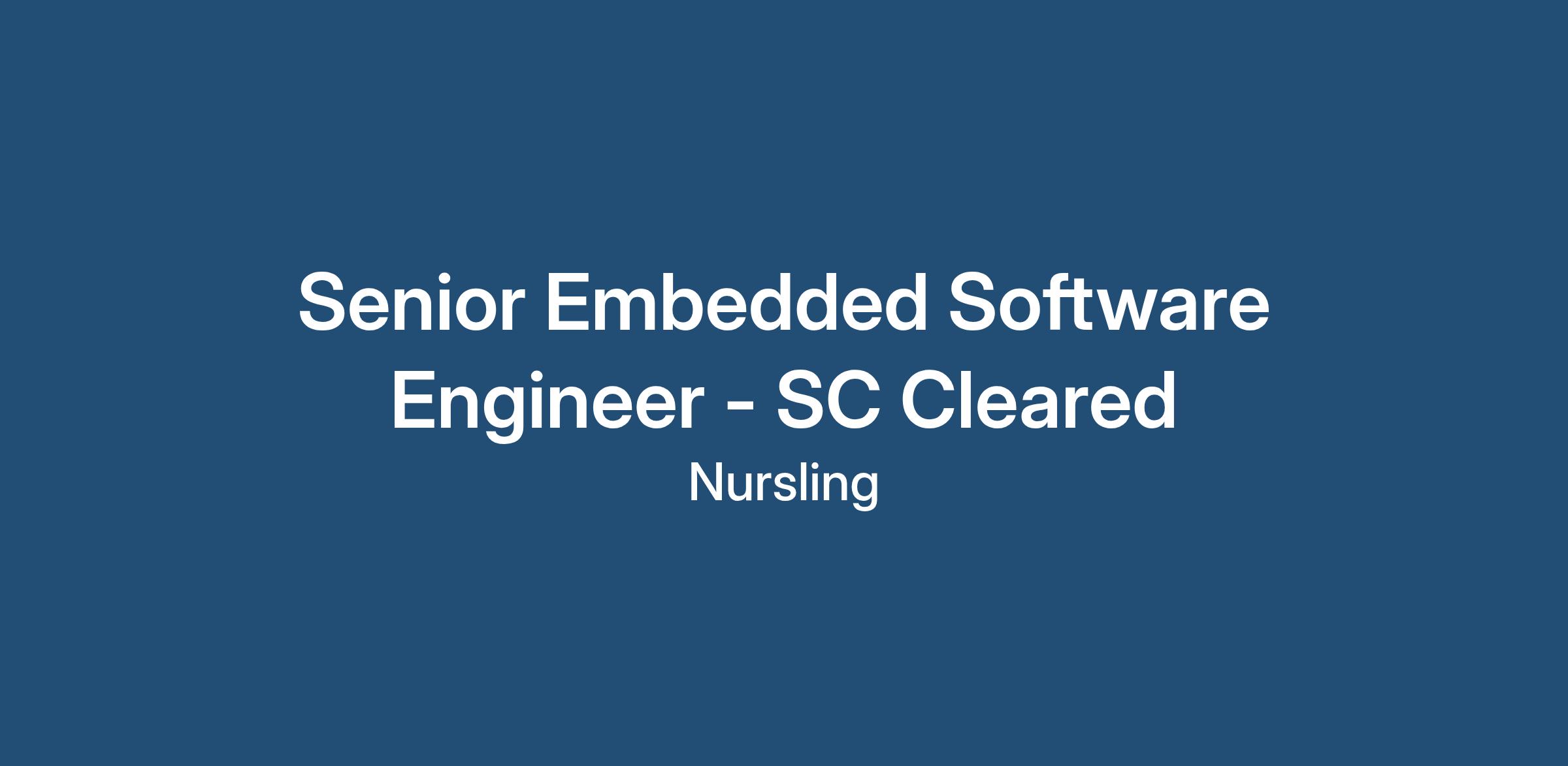 Senior Embedded Software Engineer - SC Cleared