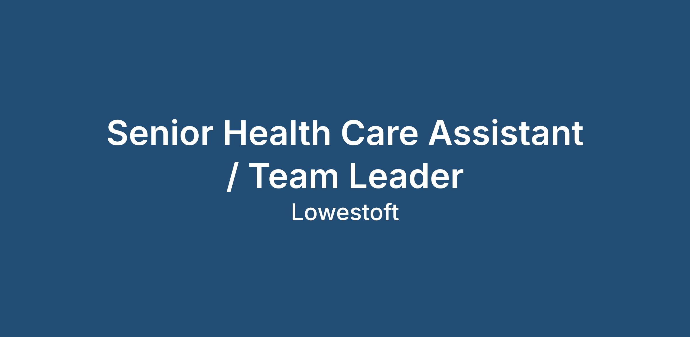 Senior Health Care Assistant / Team Leader