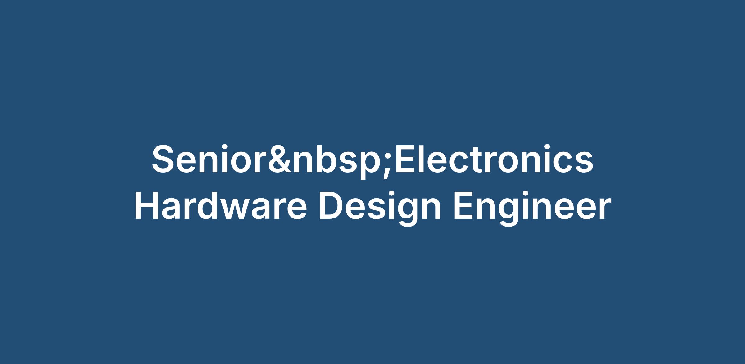 Senior Electronics Hardware Design Engineer £60-80k Base + Benefits South East Ref: ABJ6489ED Onsite: Perm