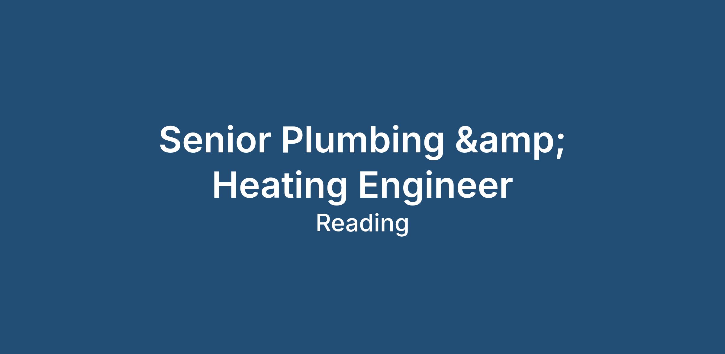 Senior Plumbing & Heating Engineer (Days Based Role / Work-Life Balance / Progression)