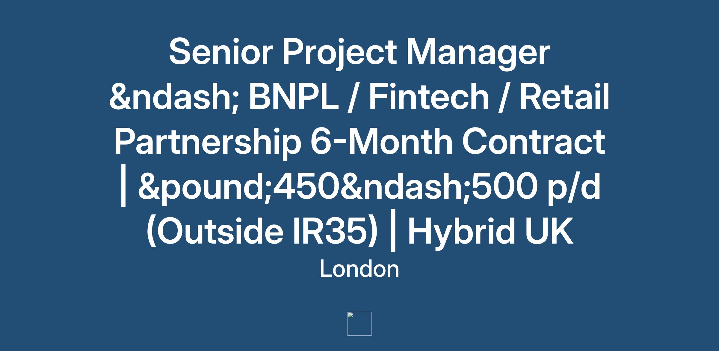 Senior Project Manager – BNPL / Fintech / Retail Partnership 6-Month Contract | £450–500 p/d (Outside IR35) | Hybrid UK