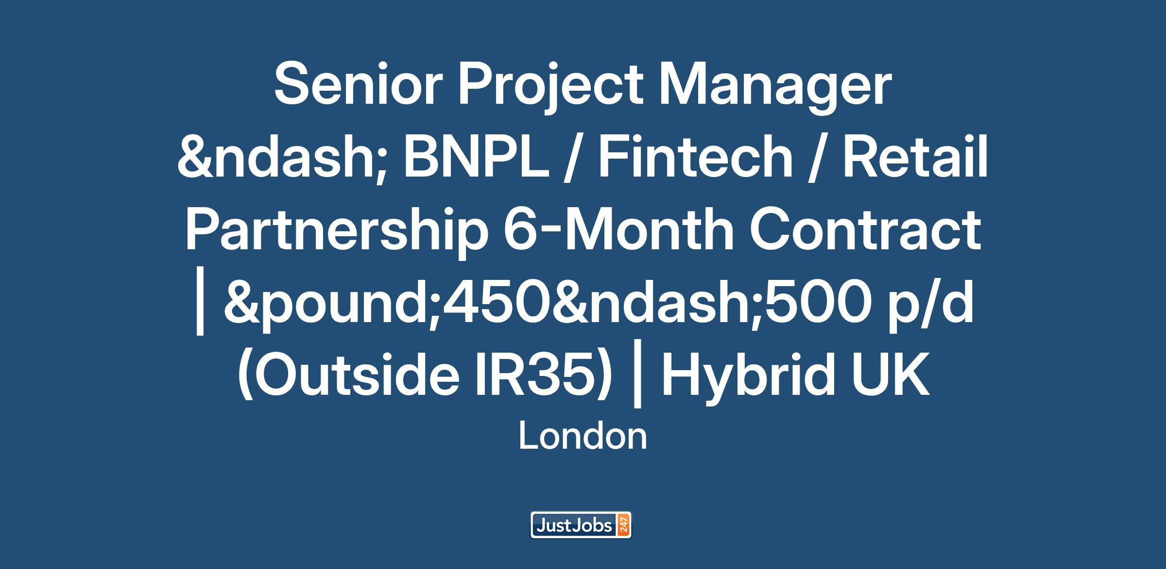 Senior Project Manager – BNPL / Fintech / Retail Partnership 6-Month Contract | £450–500 p/d (Outside IR35) | Hybrid UK