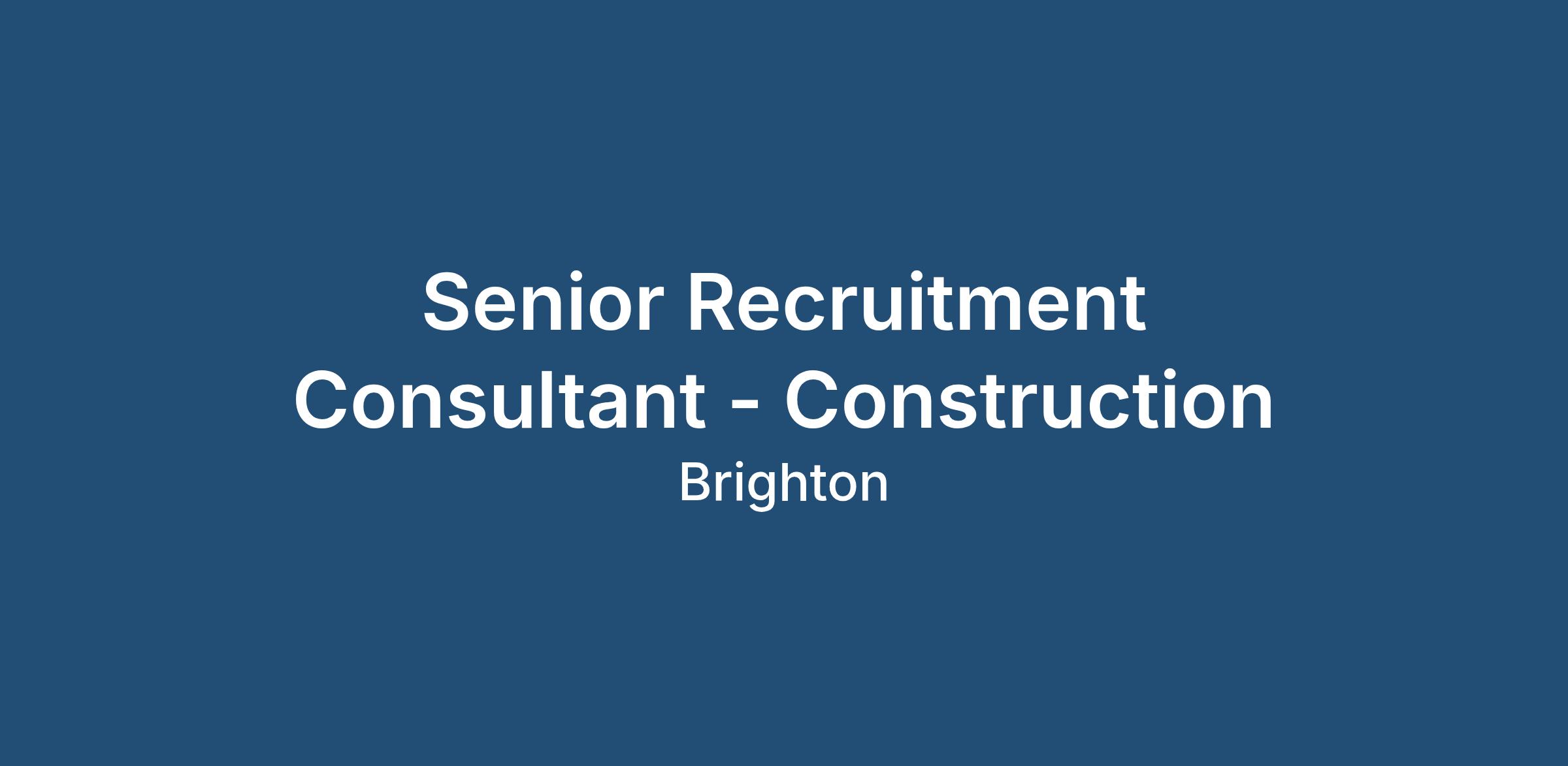 Senior Recruitment Consultant - Construction