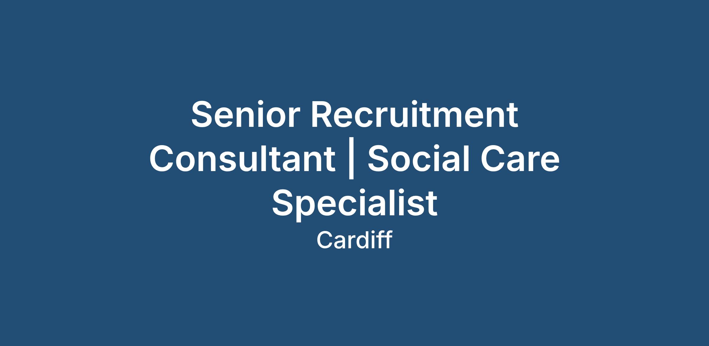 Senior Recruitment Consultant | Social Care Specialist | Cardiff Onsite