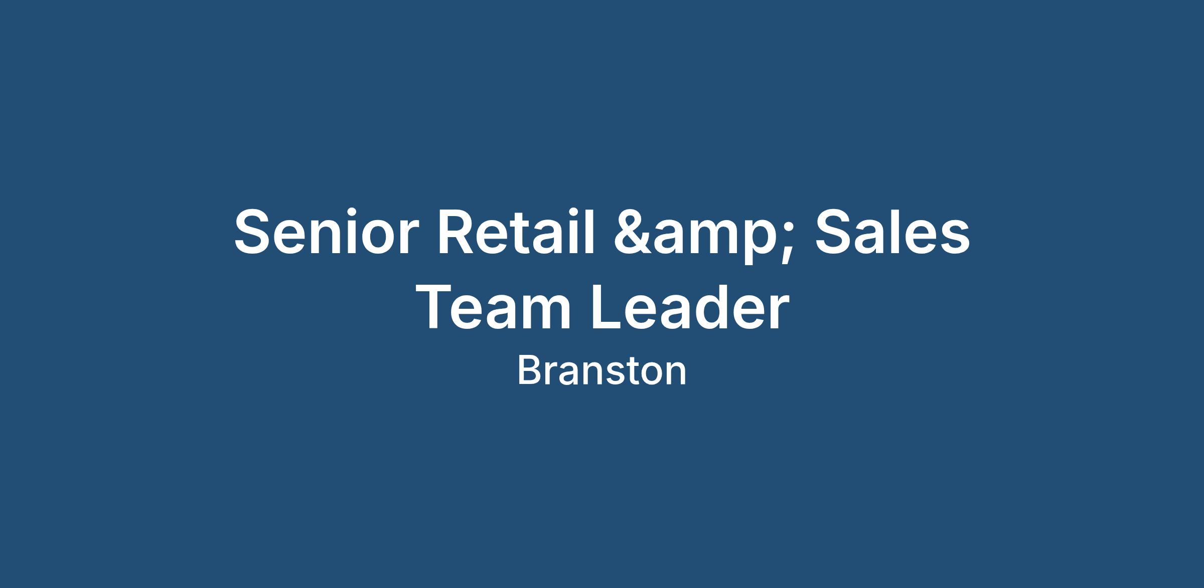 We’re looking for a Senior Retail & Sales Team Leader with: